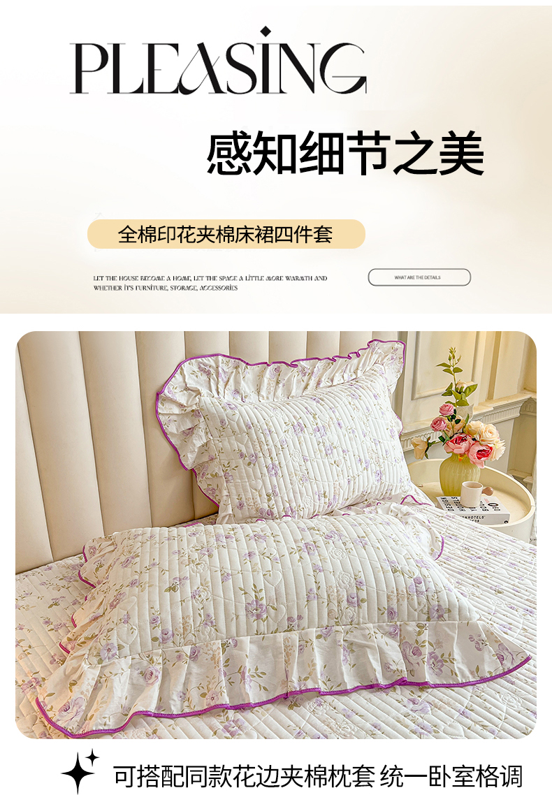 (总)宜凡家纺 2026新款全棉印花公主风夹棉床裙四件套