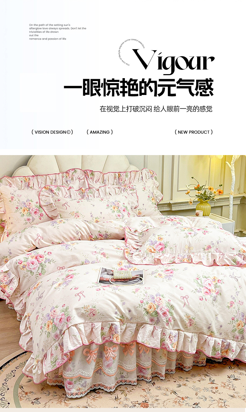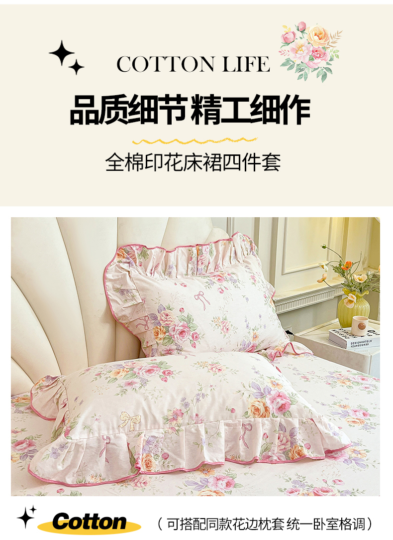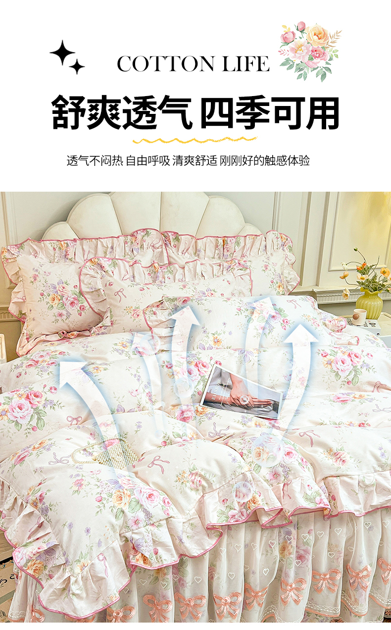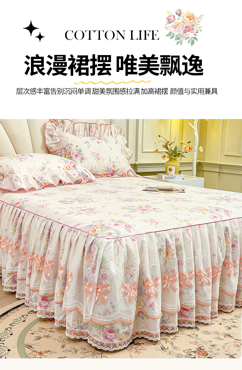 当前位置: 91家纺网 > 商品网购 > 床品套件 > 四件套 > 全棉普通四件套 > 宜凡家纺 2026新款全棉公主风单层床裙四件套 玉容昭婉