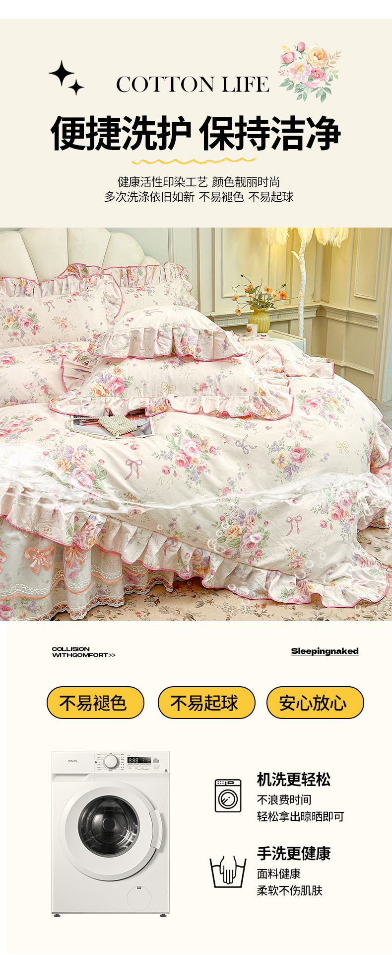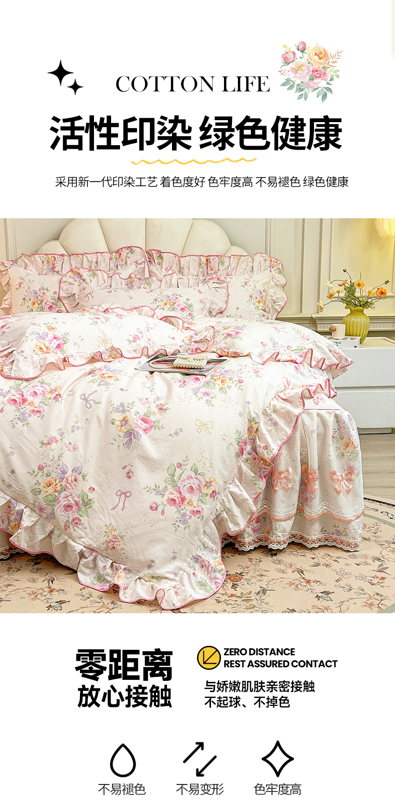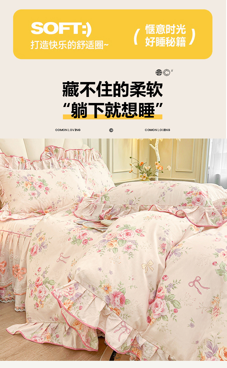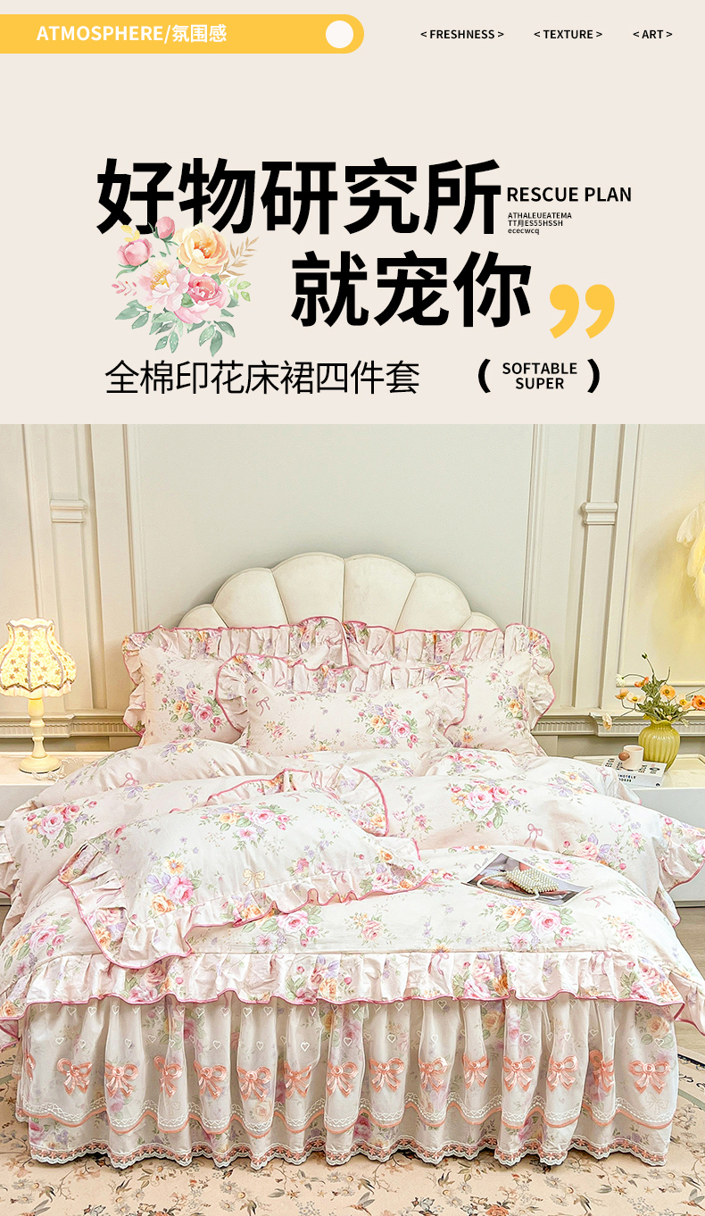 当前位置: 91家纺网 > 商品网购 > 床品套件 > 四件套 > 全棉普通四件套 > 宜凡家纺 2026新款全棉公主风单层床裙四件套 玉容昭婉
