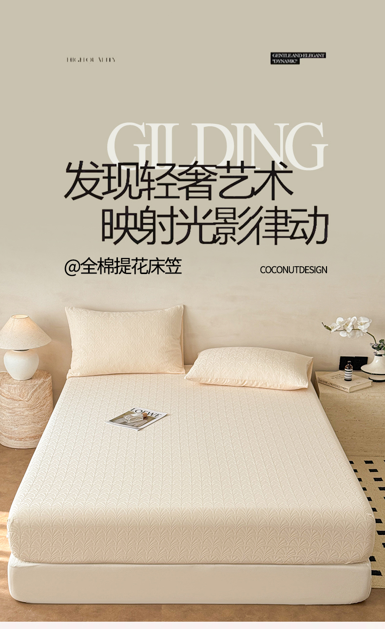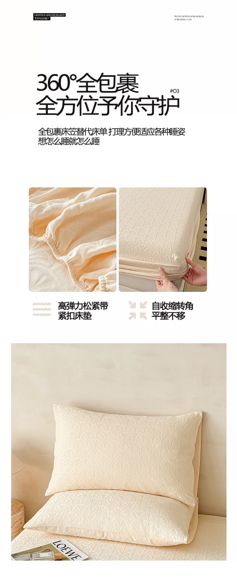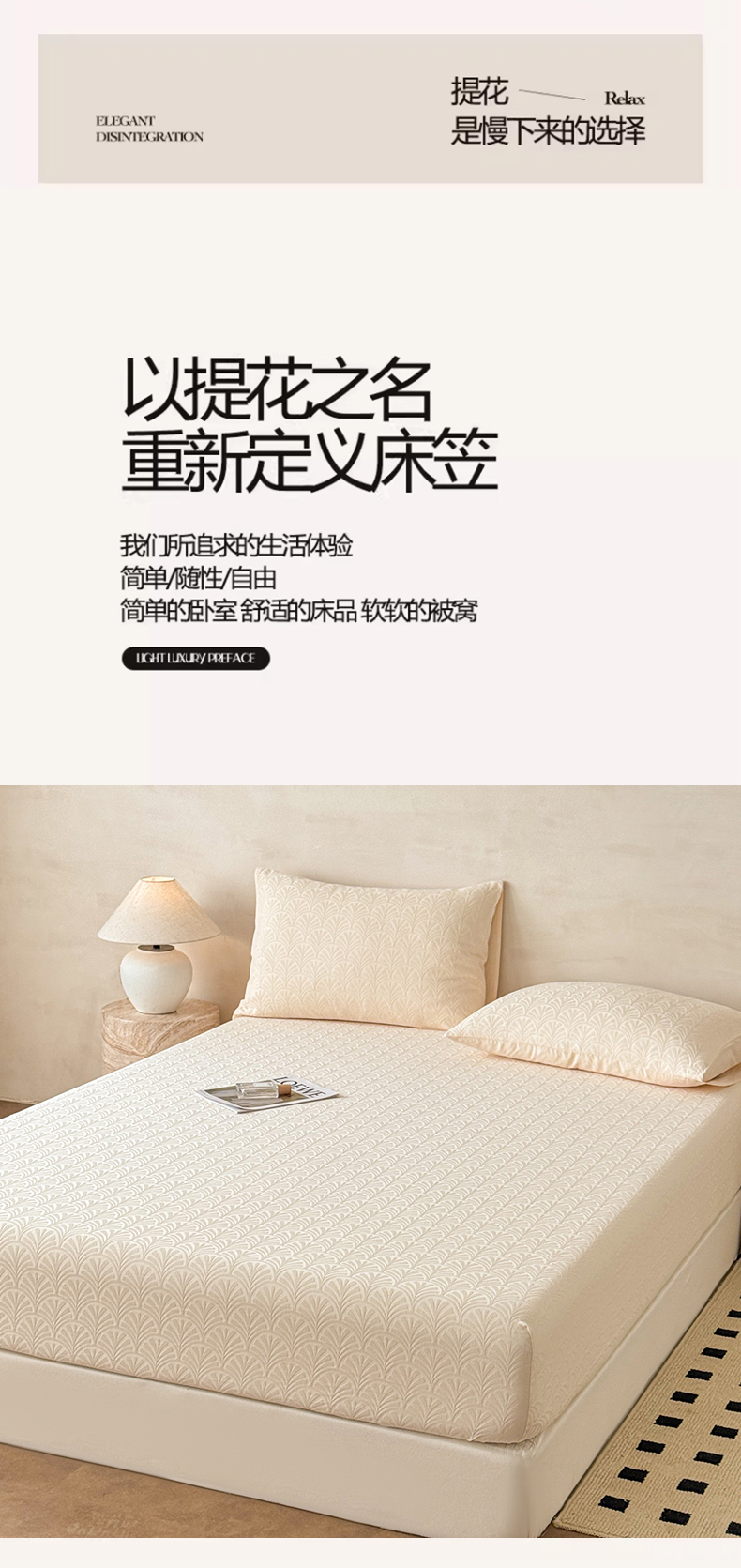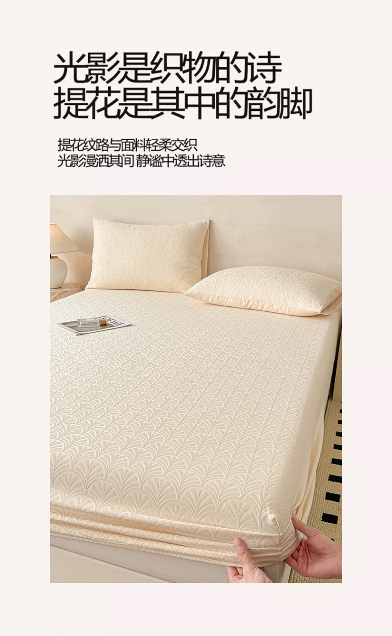 • 91家纺网 家纺一手货源 找家纺 眠博士 2026新款60S水洗立体提花床笠-场景二 床笠-杏影-奶白