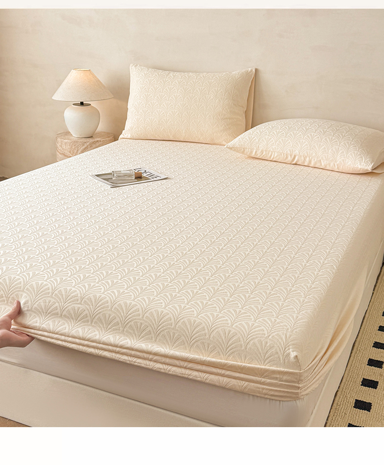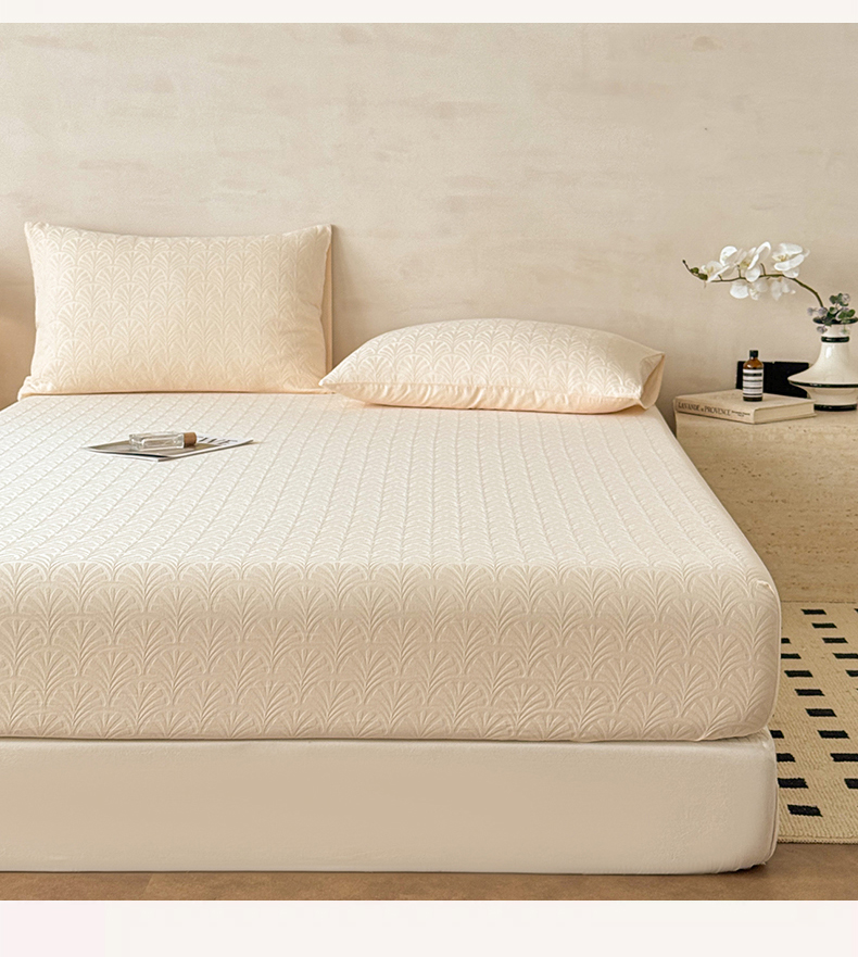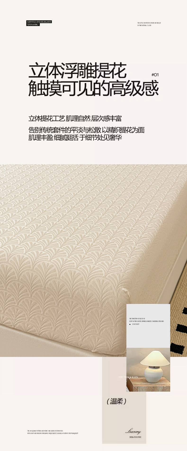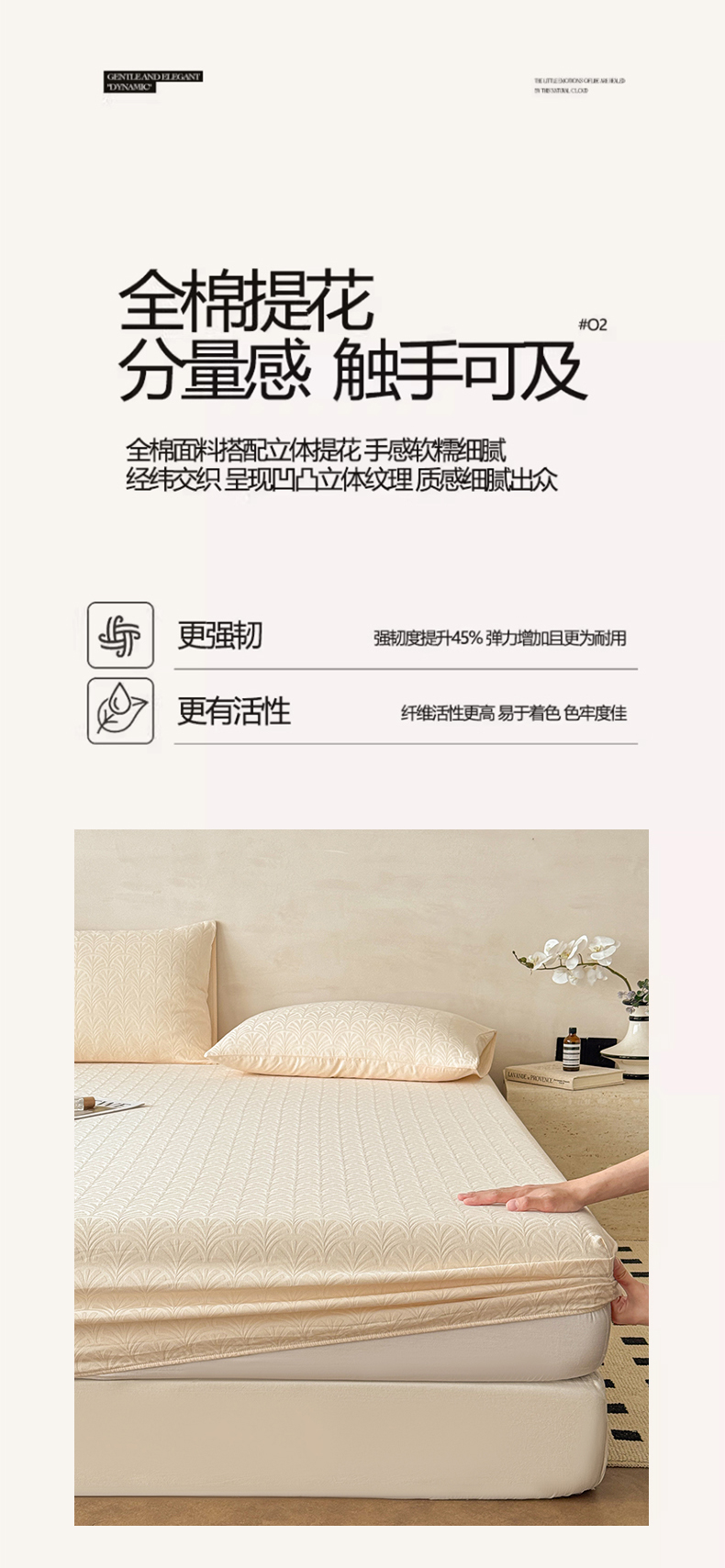 • 91家纺网 家纺一手货源 找家纺 眠博士 2026新款60S水洗立体提花床笠-场景二 床笠-杏影-奶白
