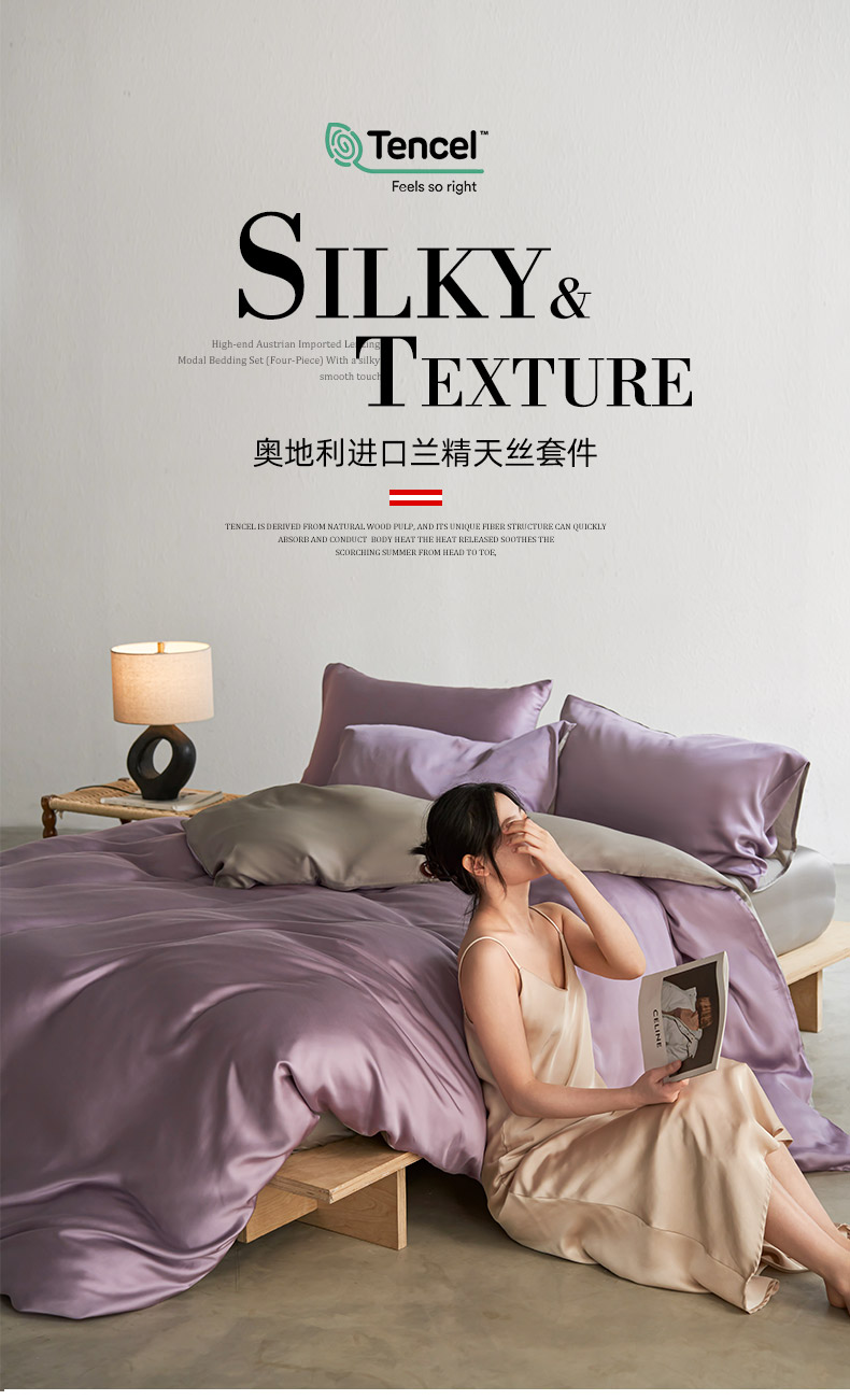 当前位置: 91家纺网 > 商品网购 > 床品套件 > 四件套 > 其它四件套 > 轩和家居 2026新款60支奥地利兰精天丝四件套 香气紫+伯爵灰