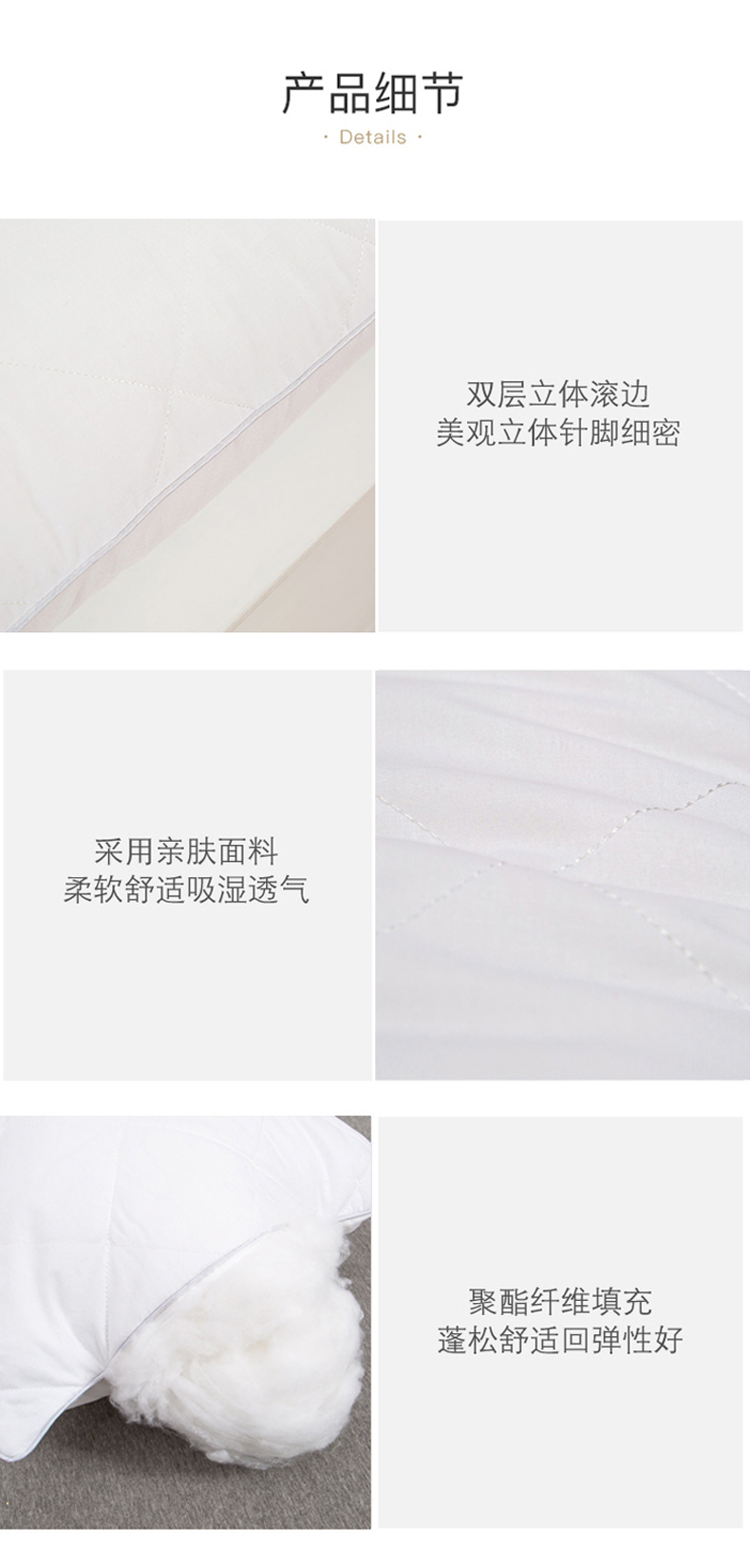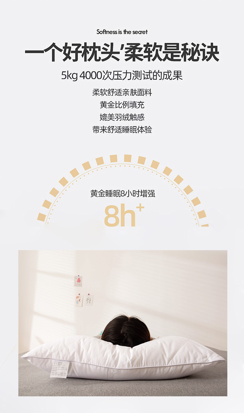 商品名称:(总)兴丝露枕芯 亲肤绗绣枕芯 羽丝枕 立体枕 双边枕芯 舒适枕 中高枕 枕头