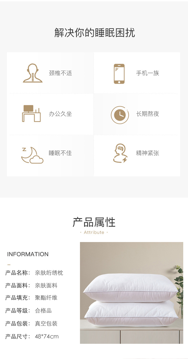 (总)兴丝露枕芯 亲肤绗绣枕芯 羽丝枕 立体枕 双边枕芯 舒适枕 中高枕 枕头