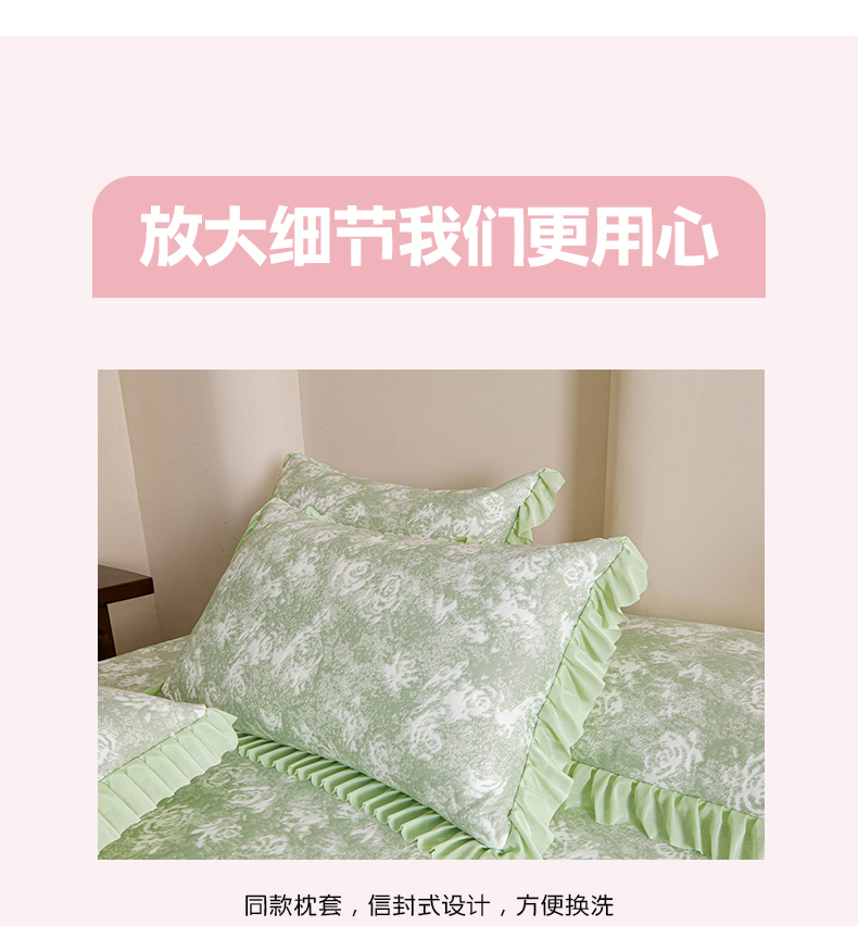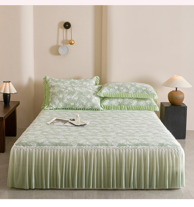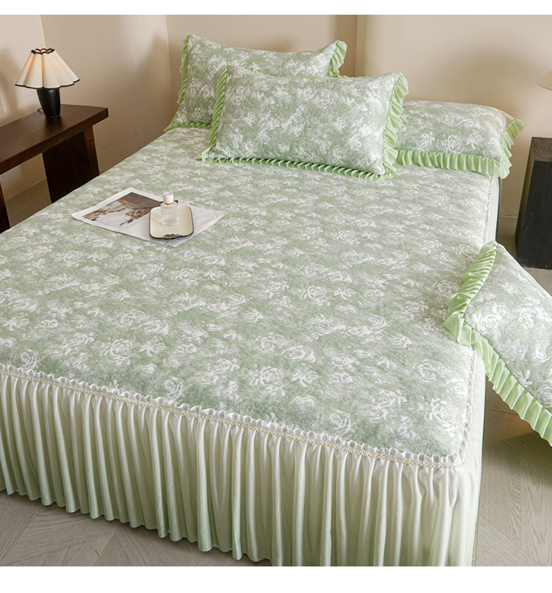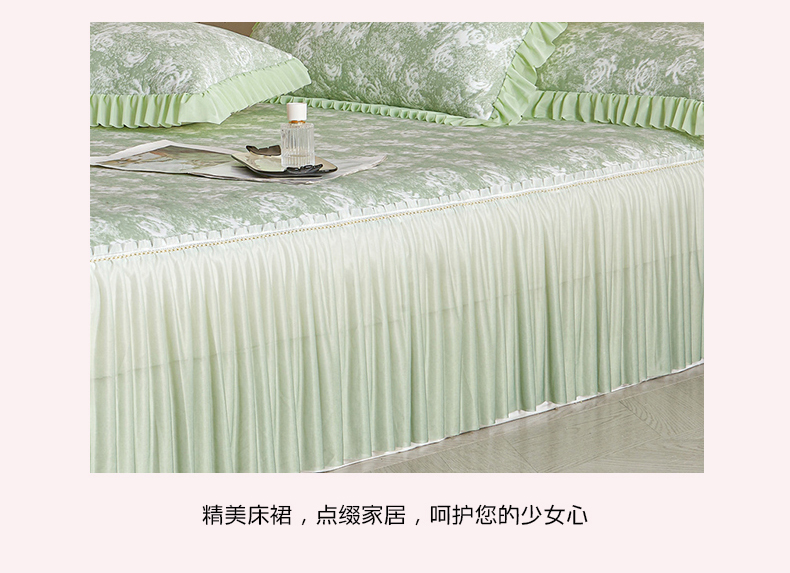 商品名称:诺梵家纺 2026新款PE冰豆豆冰丝凉席床裙款-玫瑰系列 绿玫瑰