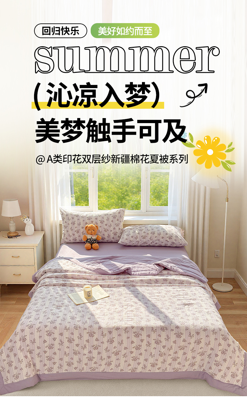 • 91家纺网 家纺一手货源 找家纺 (总)晓时候 2026双层纱印花夏被四件套新疆棉花被可机洗夏凉被空调被夏季被子,安然入夏,萌萌星星人,繁花,奶芙狗,多彩波点,蝴蝶结-紫,花间兔,蓝色泡芙狗,洛神花间,萌宠派对,豆蔻,星星喵,芊芊花语,缤纷水果,甜甜西高地,甜心女孩,小确幸,俏皮狗