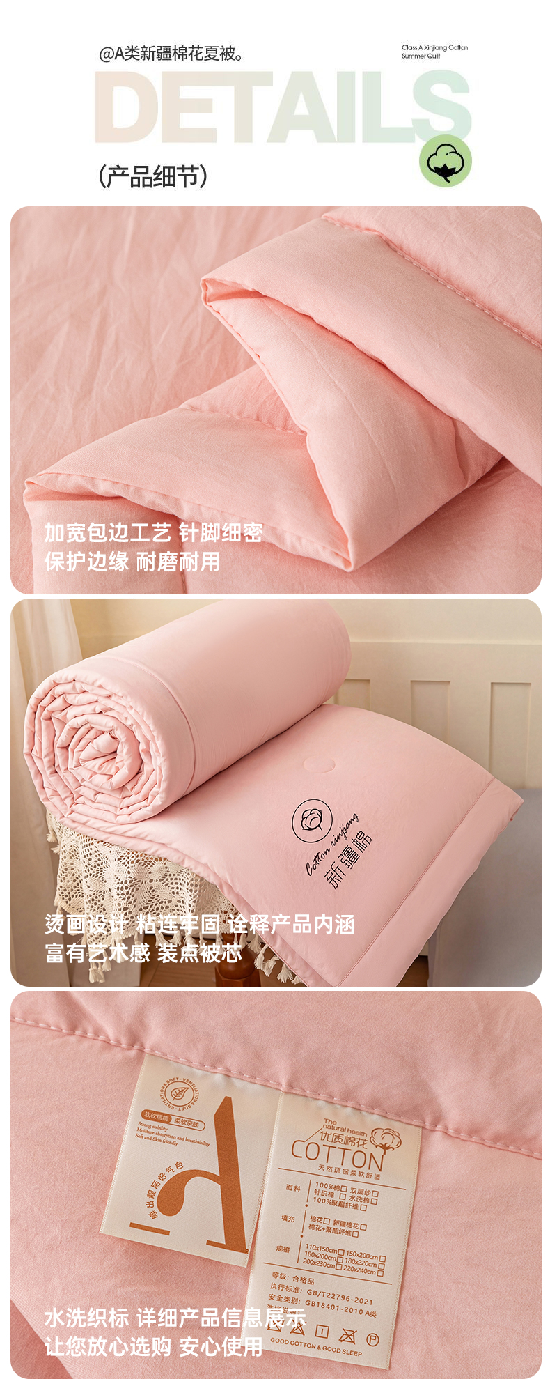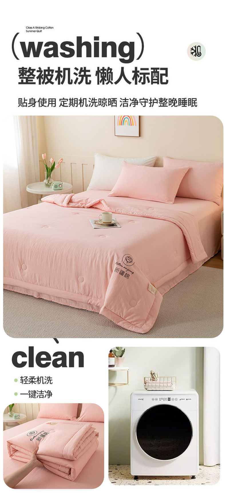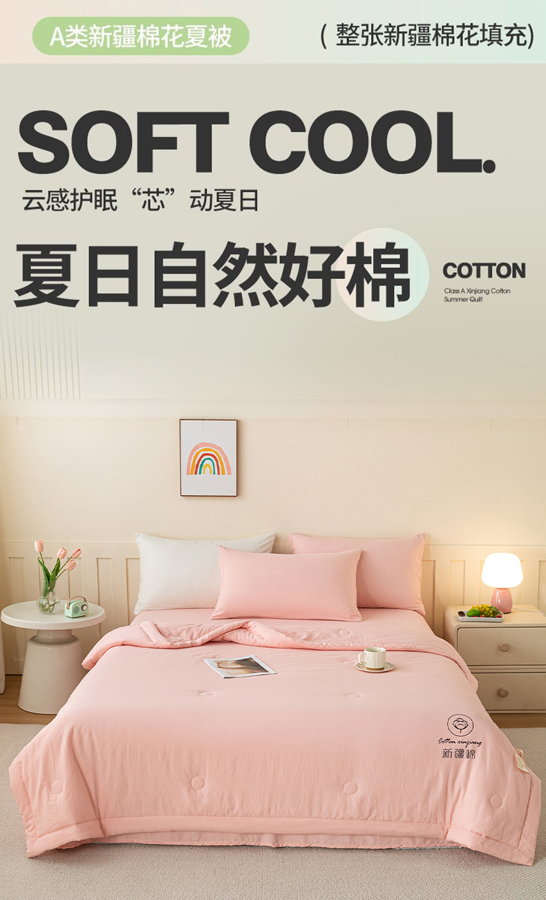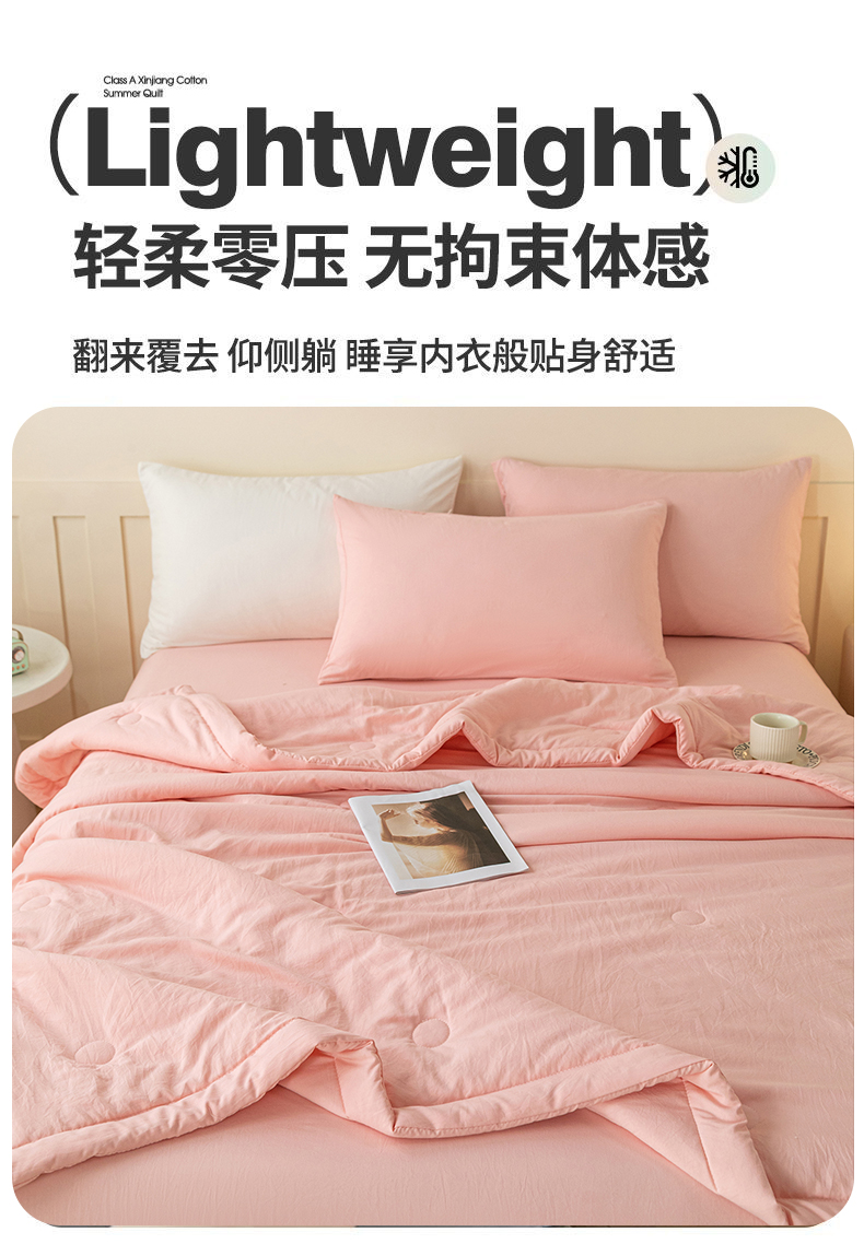 商品名称:几禾 2026春夏新款纯色水洗棉双拼夏被新疆棉花被夏凉被空调被被子被芯 纯色-粉色