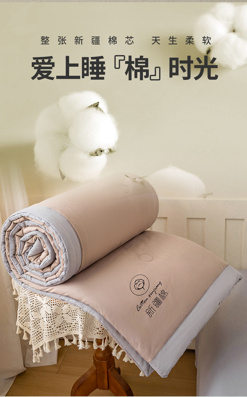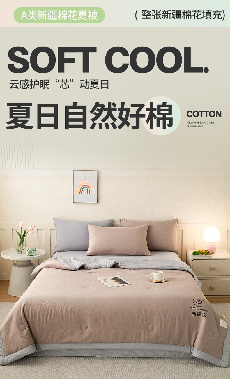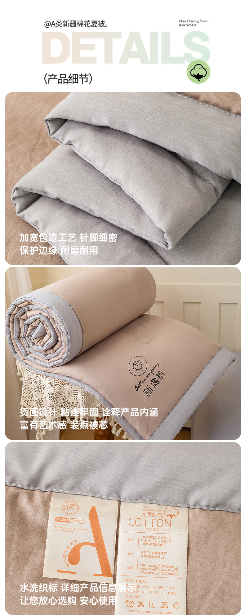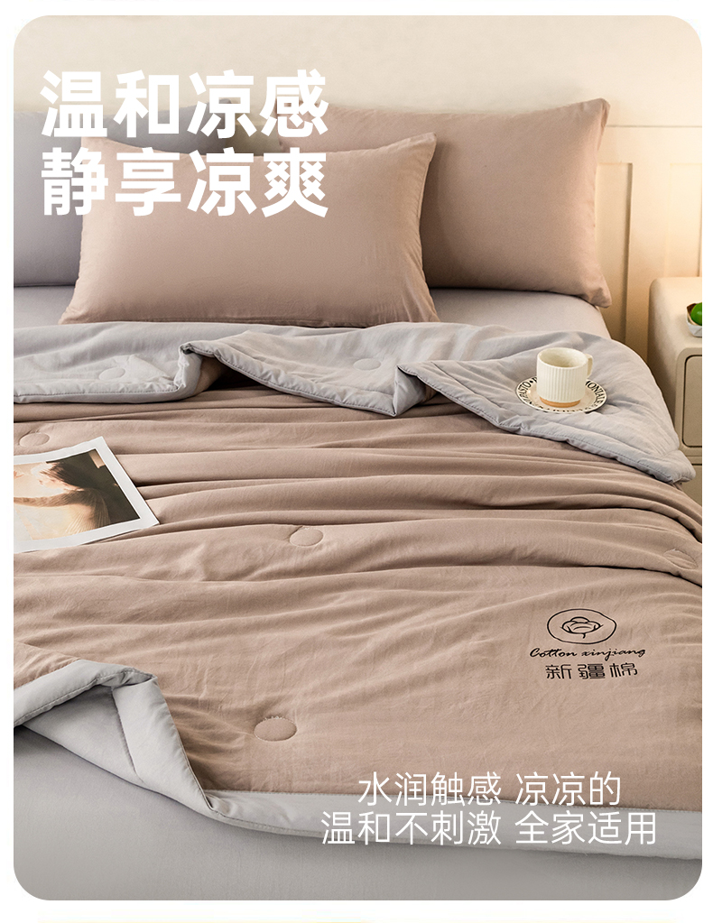商品名称:几禾 2026春夏新款纯色水洗棉双拼夏被新疆棉花被夏凉被空调被被子被芯 双拼-卡其灰