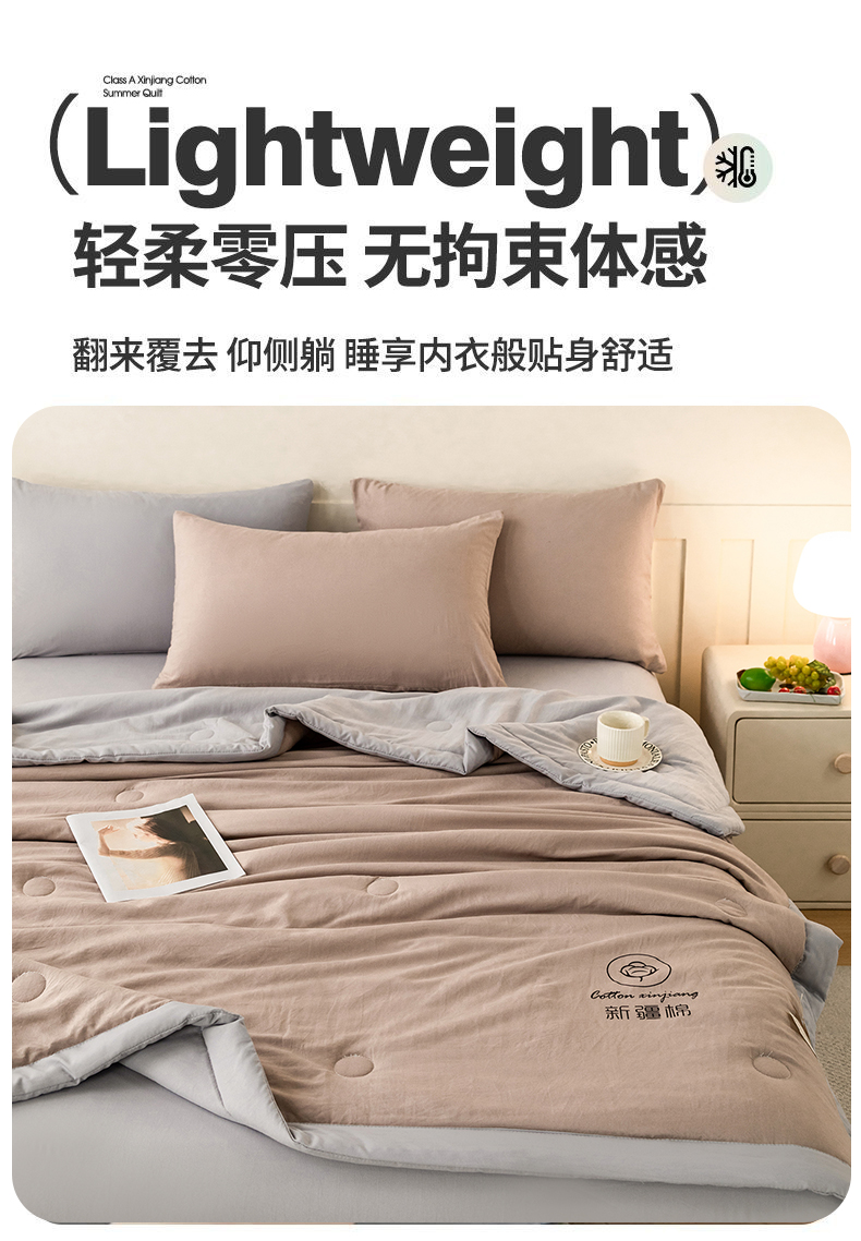 几禾 2026春夏新款纯色水洗棉双拼夏被新疆棉花被夏凉被空调被被子被芯 双拼-卡其灰