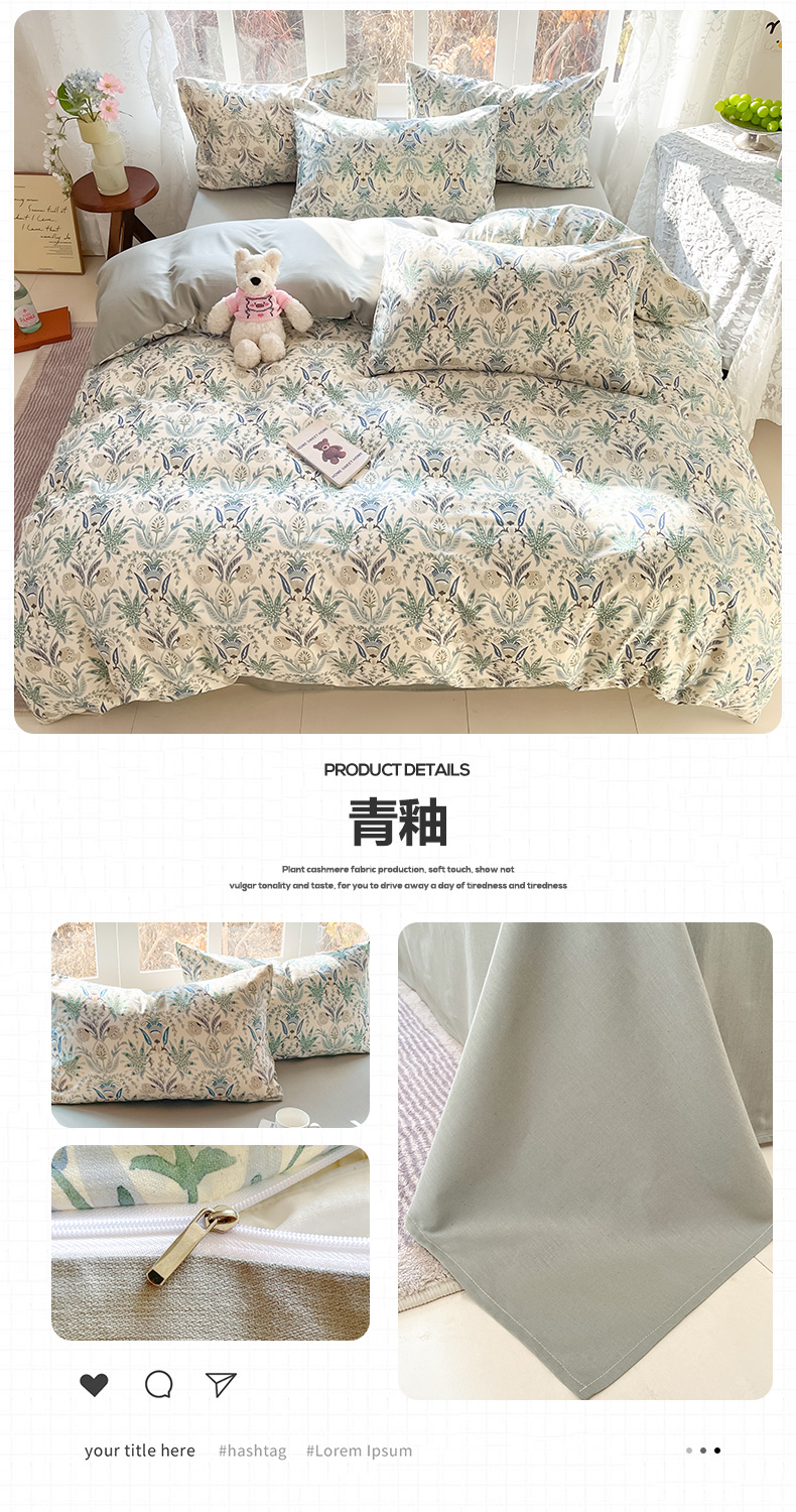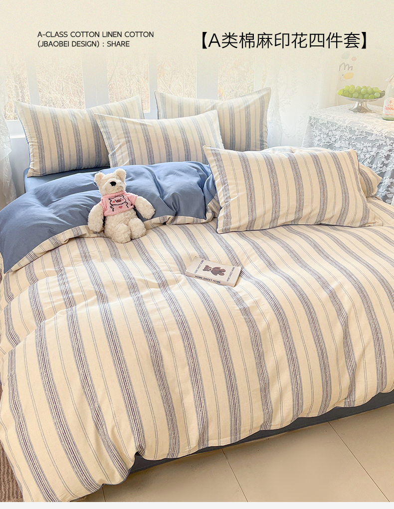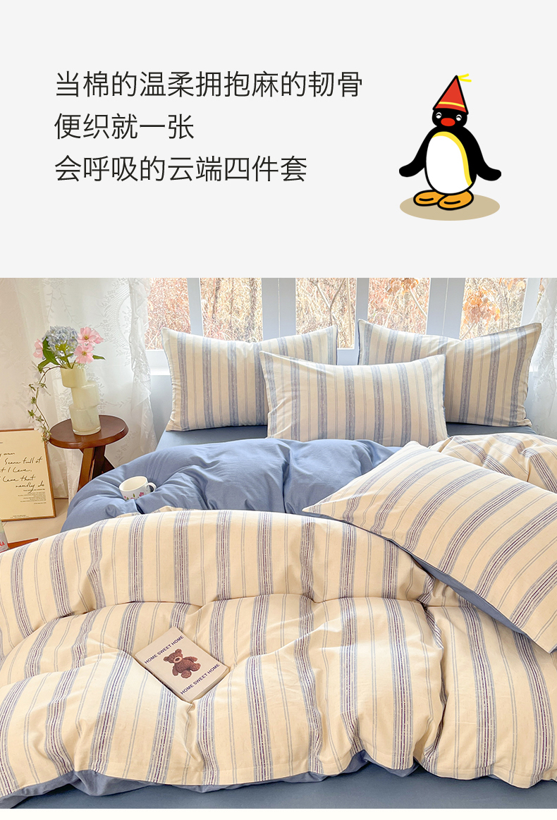 当前位置: 91家纺网 > 商品网购 > 床品套件 > 四件套 > 全棉普通四件套 > 名兮家居 2026新款A类全棉棉麻四件套 蓝调