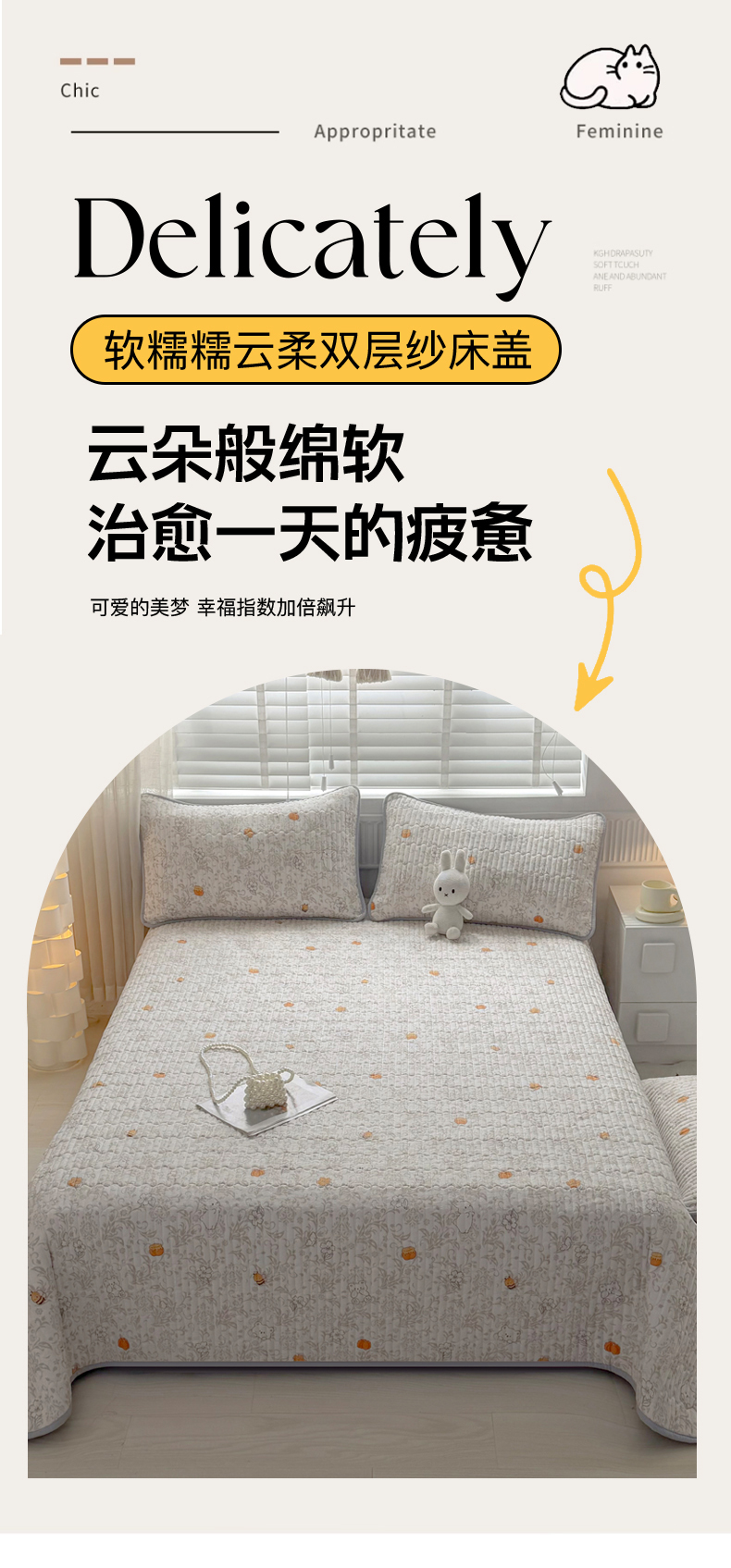 • 91家纺网 家纺一手货源 找家纺 悠米悠家 2026春夏新款木棉双层纱单床盖 床盖单件 蜜熊絮语