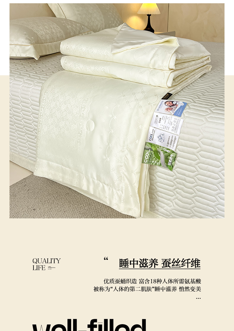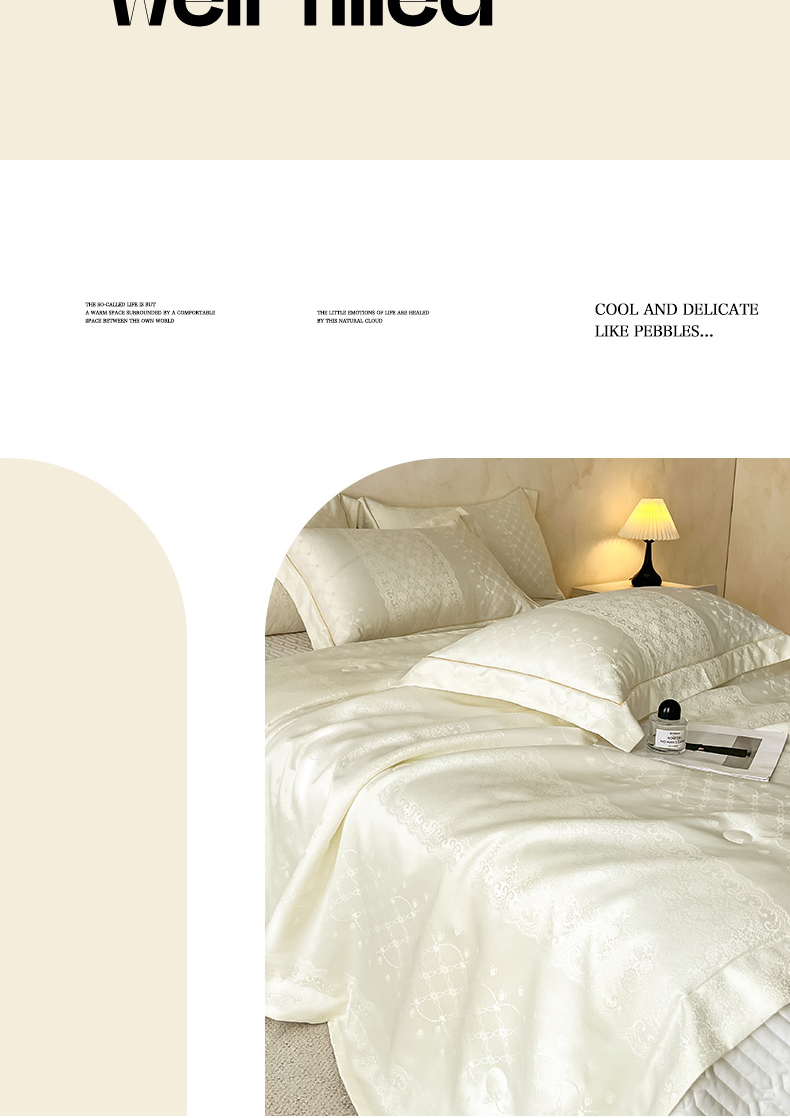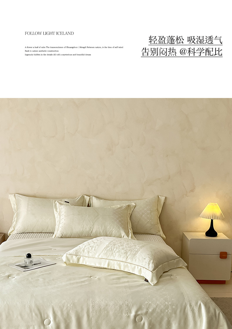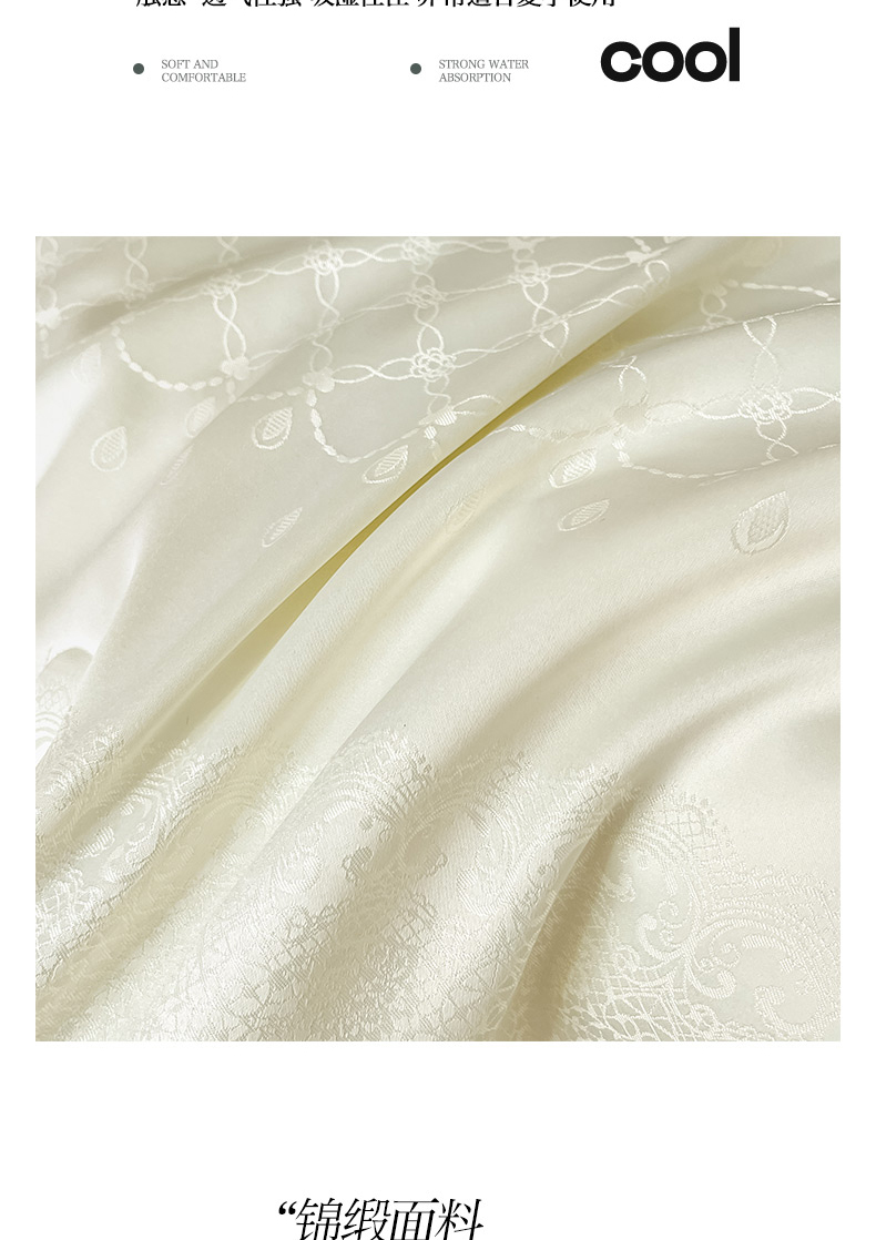 当前位置: 91家纺网 > 商品网购 > 床品套件 > 四件套 > 夏被四件套 > 大麦家纺 2026年高精密锦缎提花夏被四件套 梦网-米白