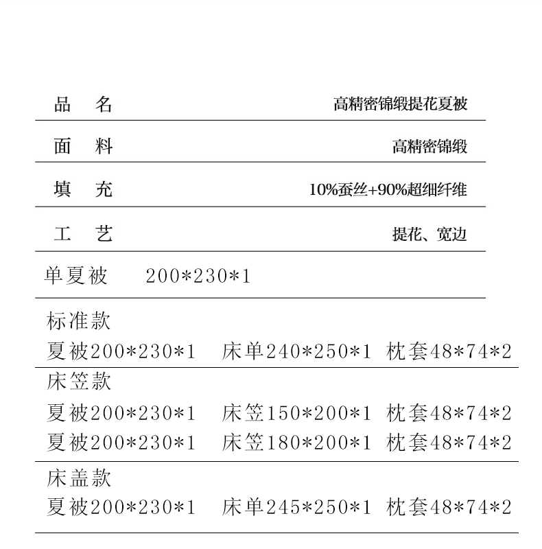 床盖款夏被200*230*1 床盖245*250*1 枕套48*74*2 | ¥118.00 |
