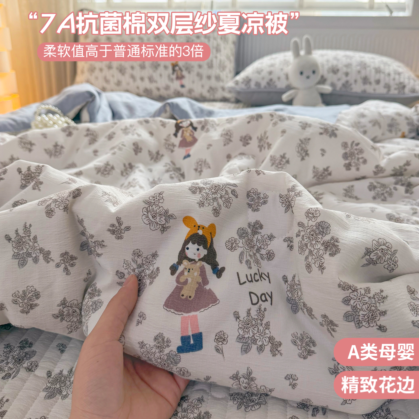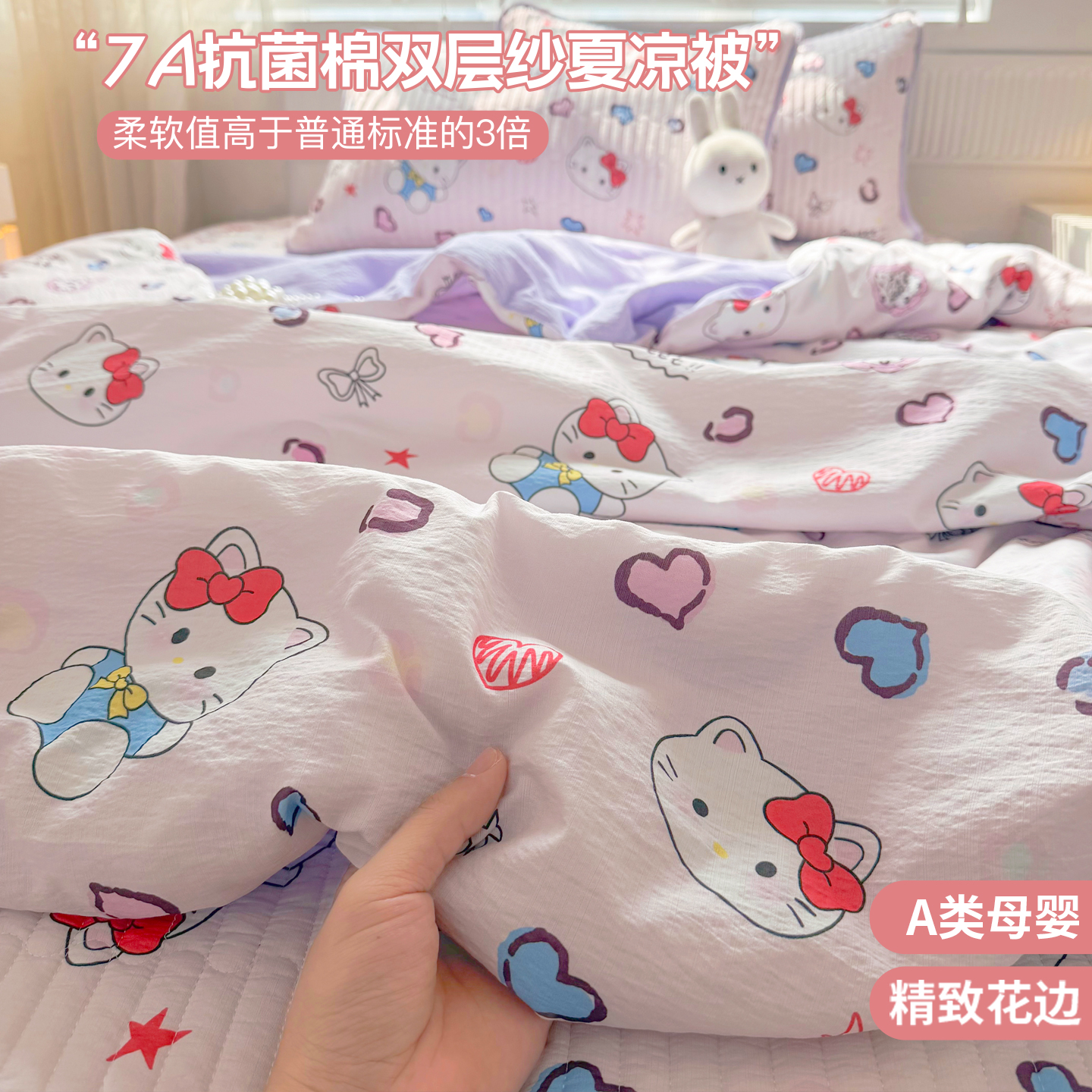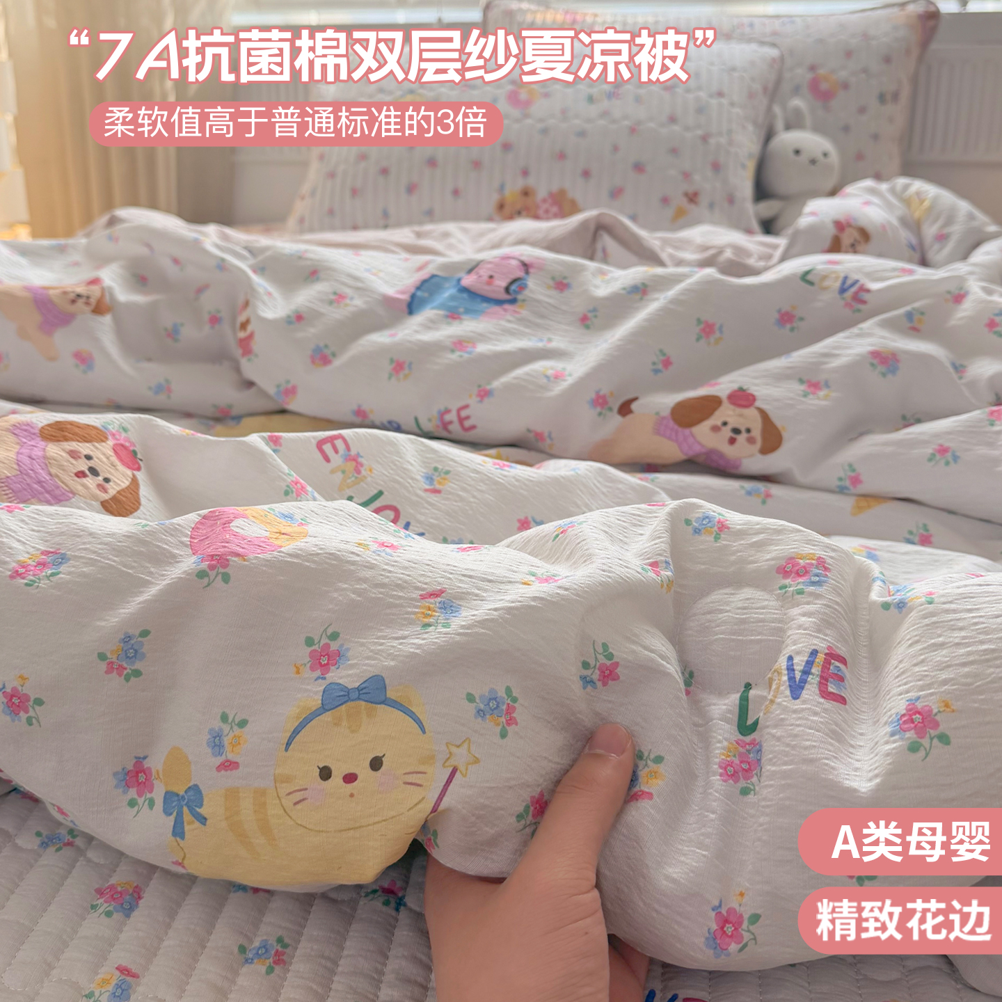 (总)悠米悠家 2026春夏新款木棉双层纱单夏被夏凉被空调被床盖四件套,Kitty·冬日甜梦,密语甜梦,松间花熊,青屿花园,赫本日记,格调蝶韵,雾岛花眠,花漾玫瑰,甜心Kitty日记,云樱格语,甜莓小熊,花漾萌宠,晨间花园,可可萌熊,萌趣派对,蜜熊絮语,南瓜田园记,奶咖小熊,趣味乐园,萌趣LABUBU,墨色花卉,星梦精灵仔,告白气球,海盐甜玫梦,温软蝶梦,云间小铁道,焦糖花境