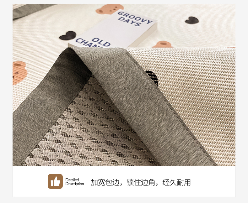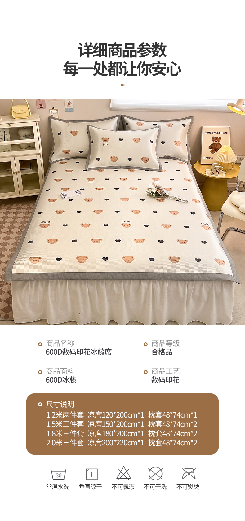 商品名称:懒猫家纺 2026春夏新款600D数码印花冰藤凉席席子-床笠款 小熊仔
