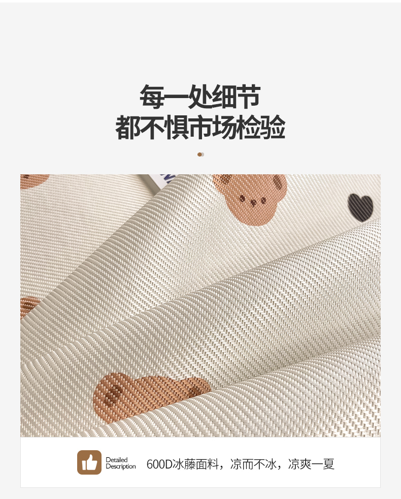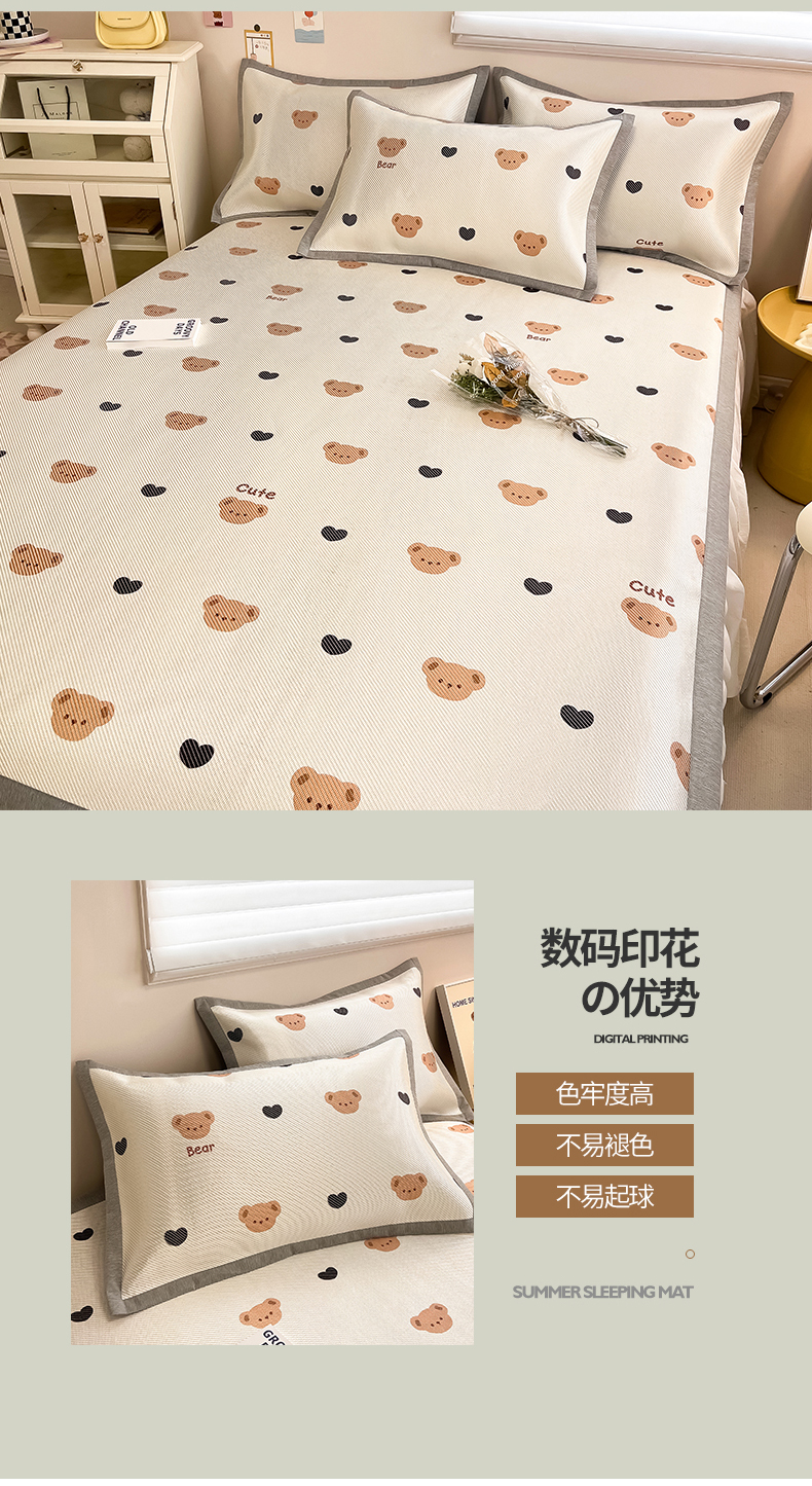 懒猫家纺 2026春夏新款600D数码印花冰藤凉席席子-床笠款 小熊仔