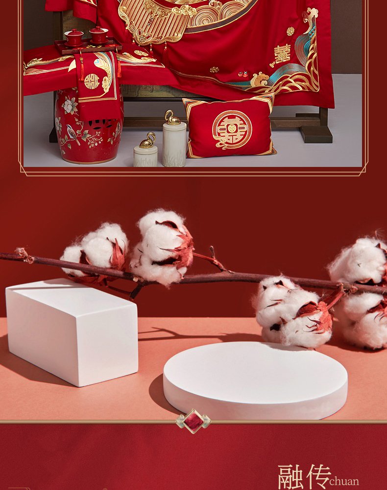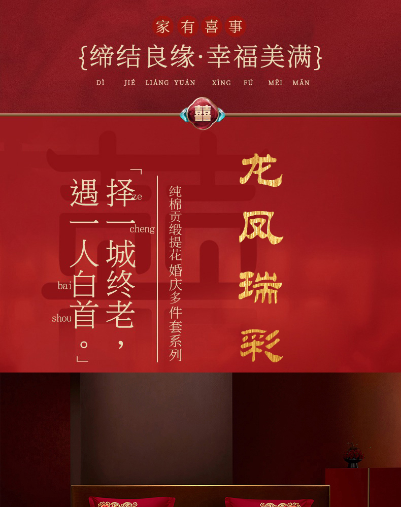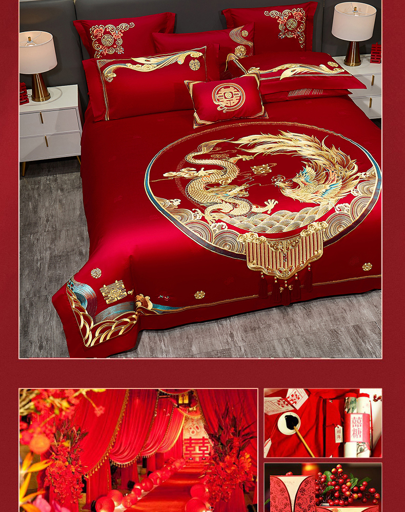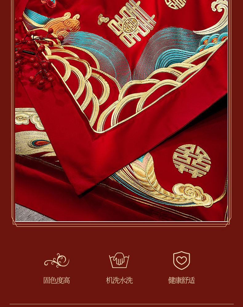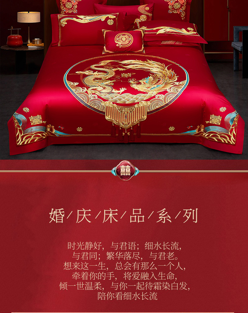 当前位置: 91家纺网 > 商品网购 > 床品套件 > 四件套 > 婚庆四件套 > 蒂爵 2026新款提花顶奢重工绣花工艺款婚庆四件套多件套490系列 龙凤瑞彩