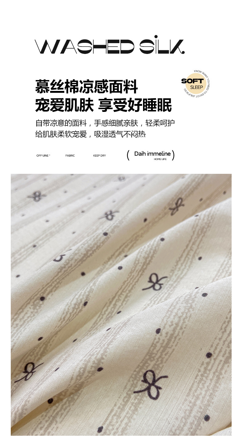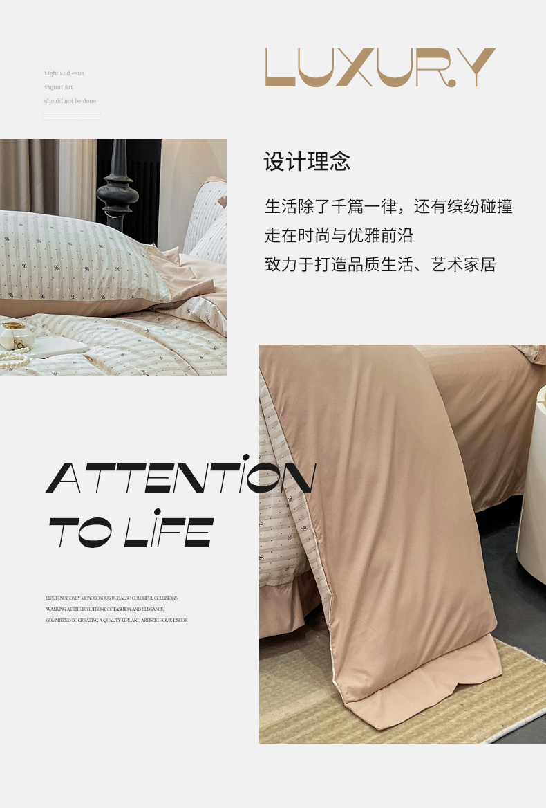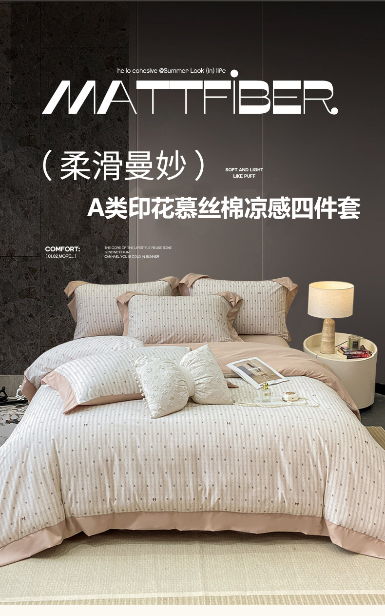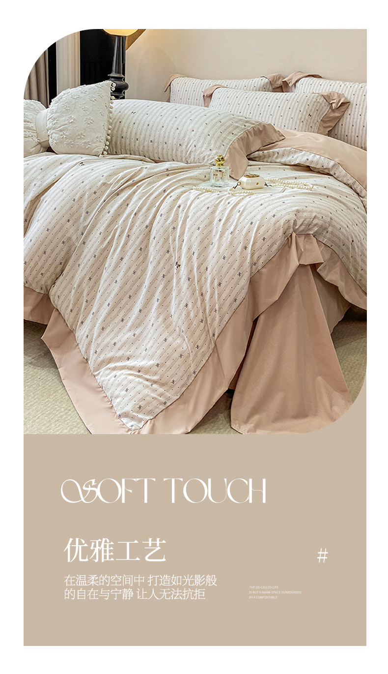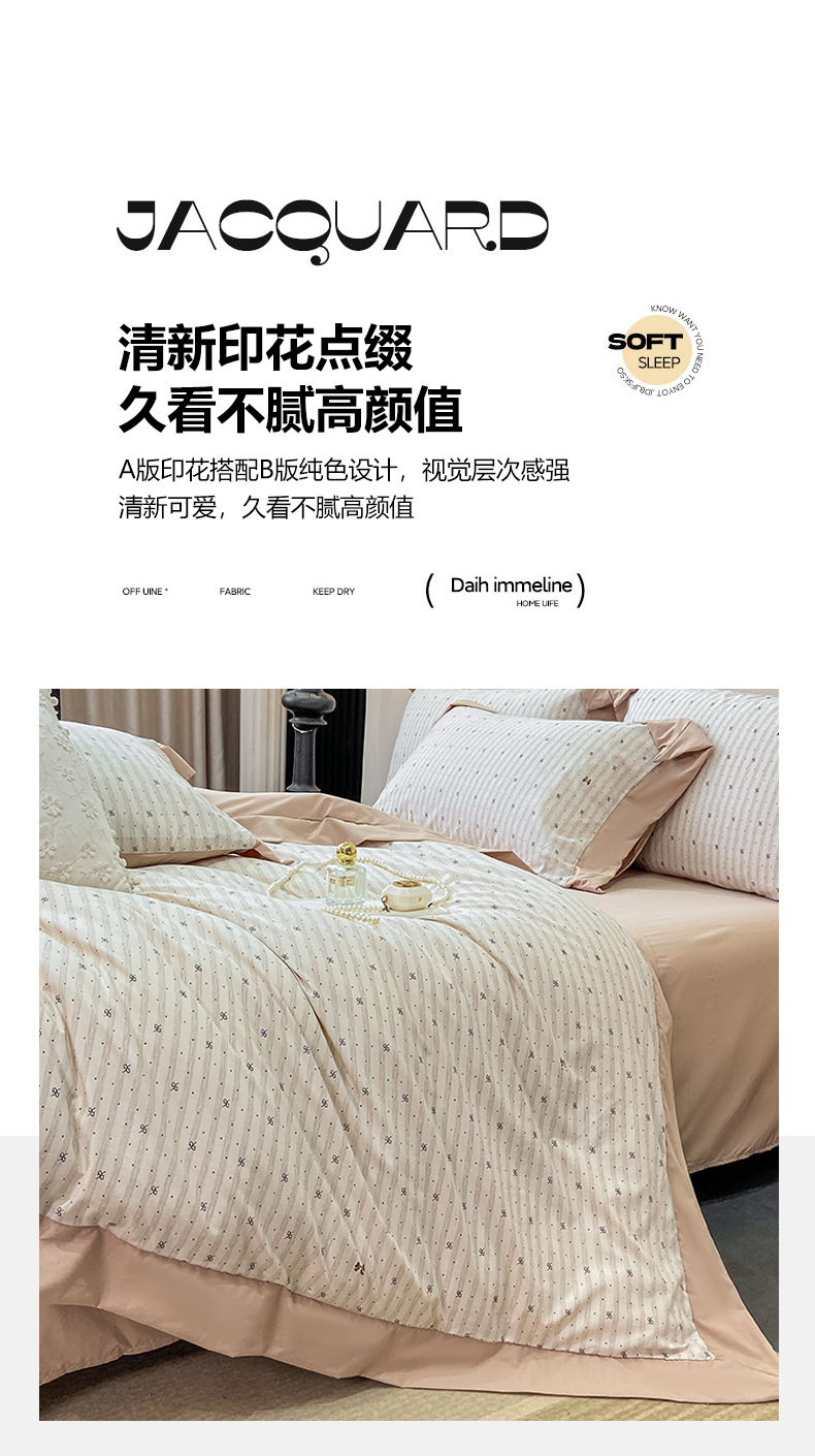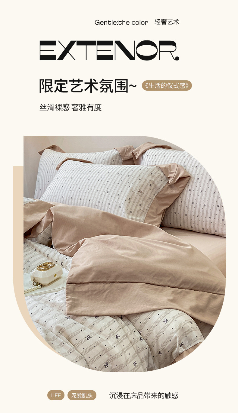 当前位置: 91家纺网 > 商品网购 > 床品套件 > 四件套 > 其它四件套 > 慕木家纺 2026新款A类印花拼角工艺慕斯棉四件套系列(抽空压缩可供跨境)提供买家秀 波点序章+驼