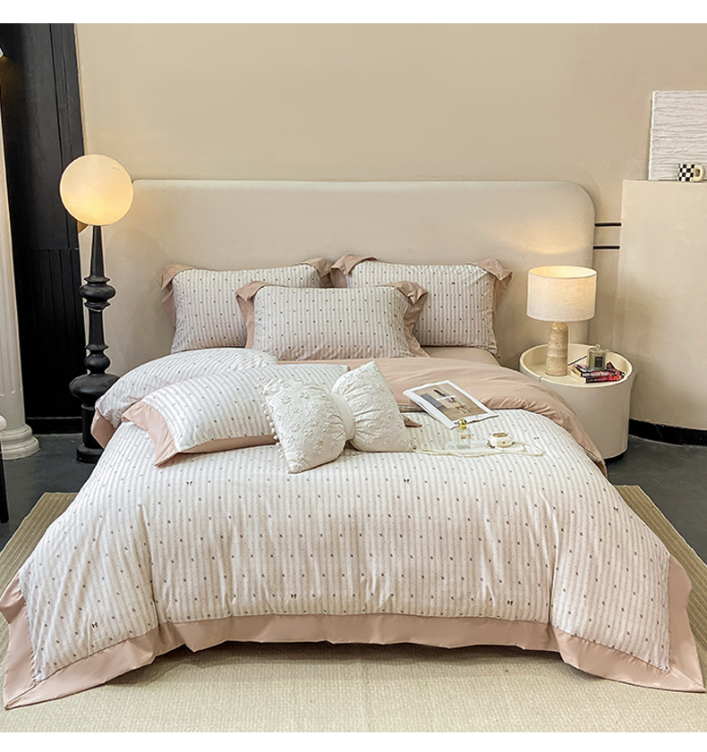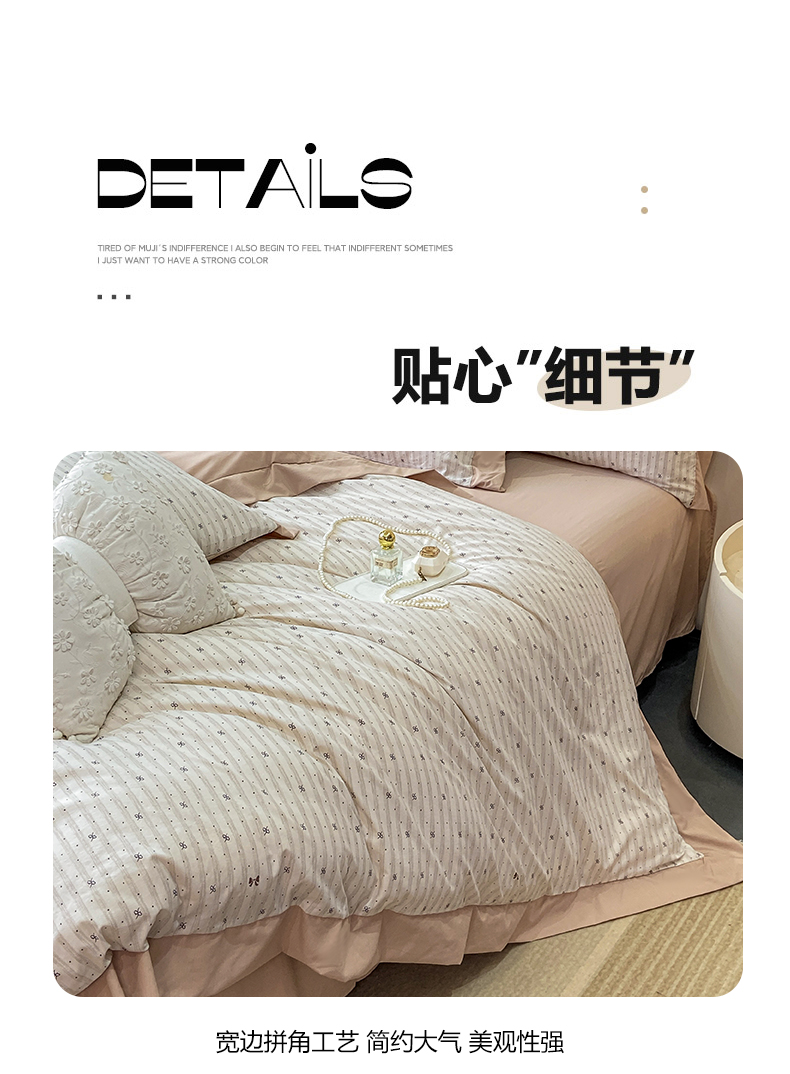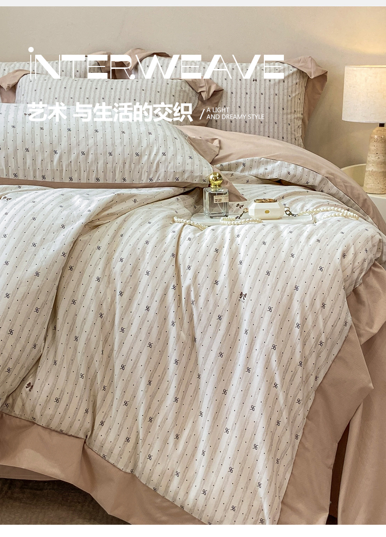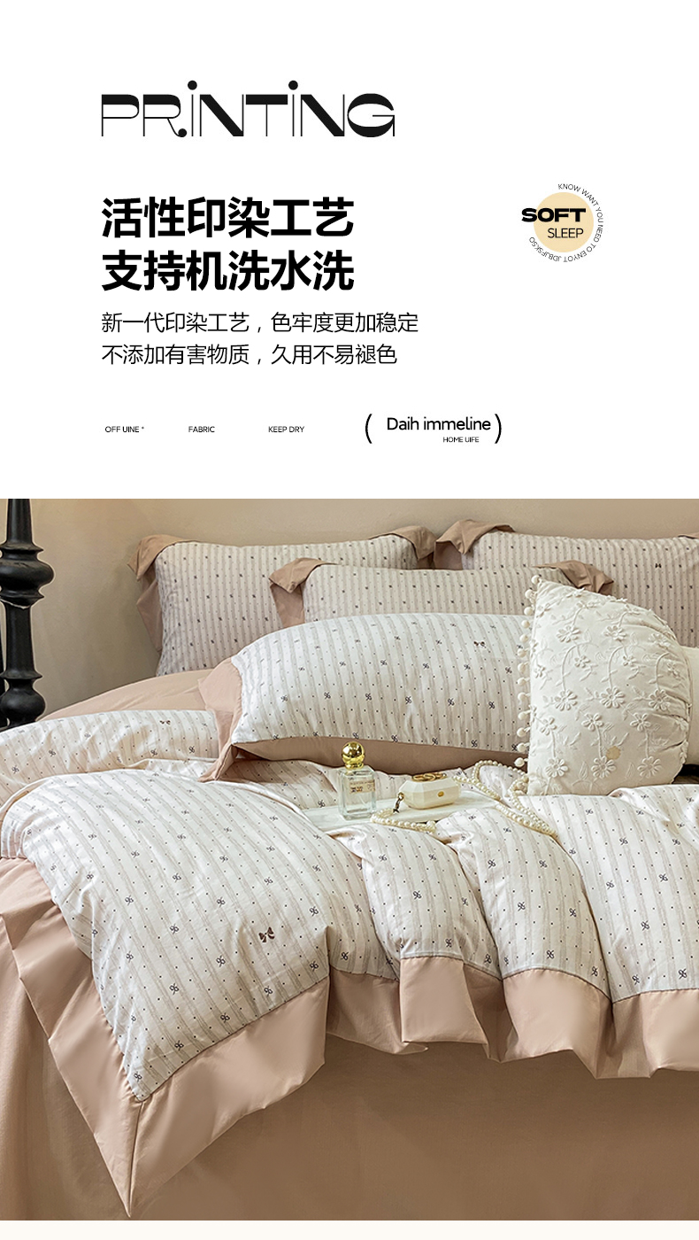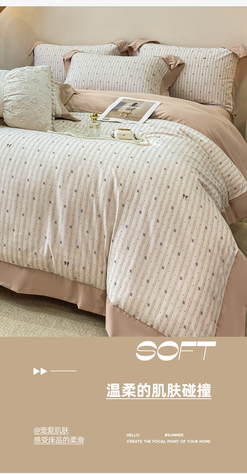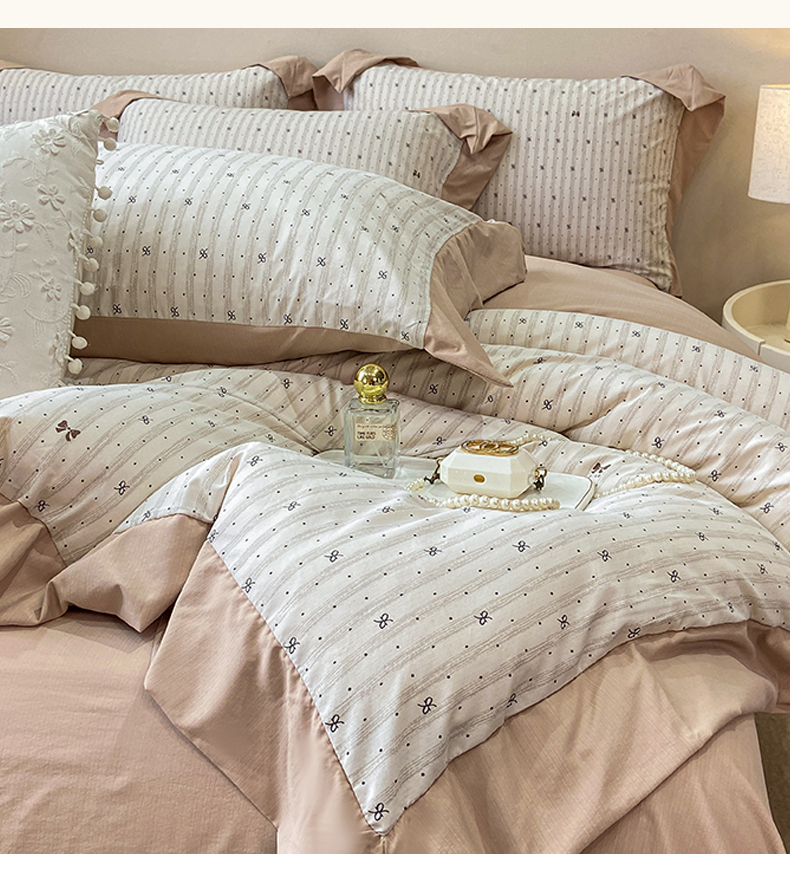 当前位置: 91家纺网 > 商品网购 > 床品套件 > 四件套 > 其它四件套 > 慕木家纺 2026新款A类印花拼角工艺慕斯棉四件套系列(抽空压缩可供跨境)提供买家秀 波点序章+驼