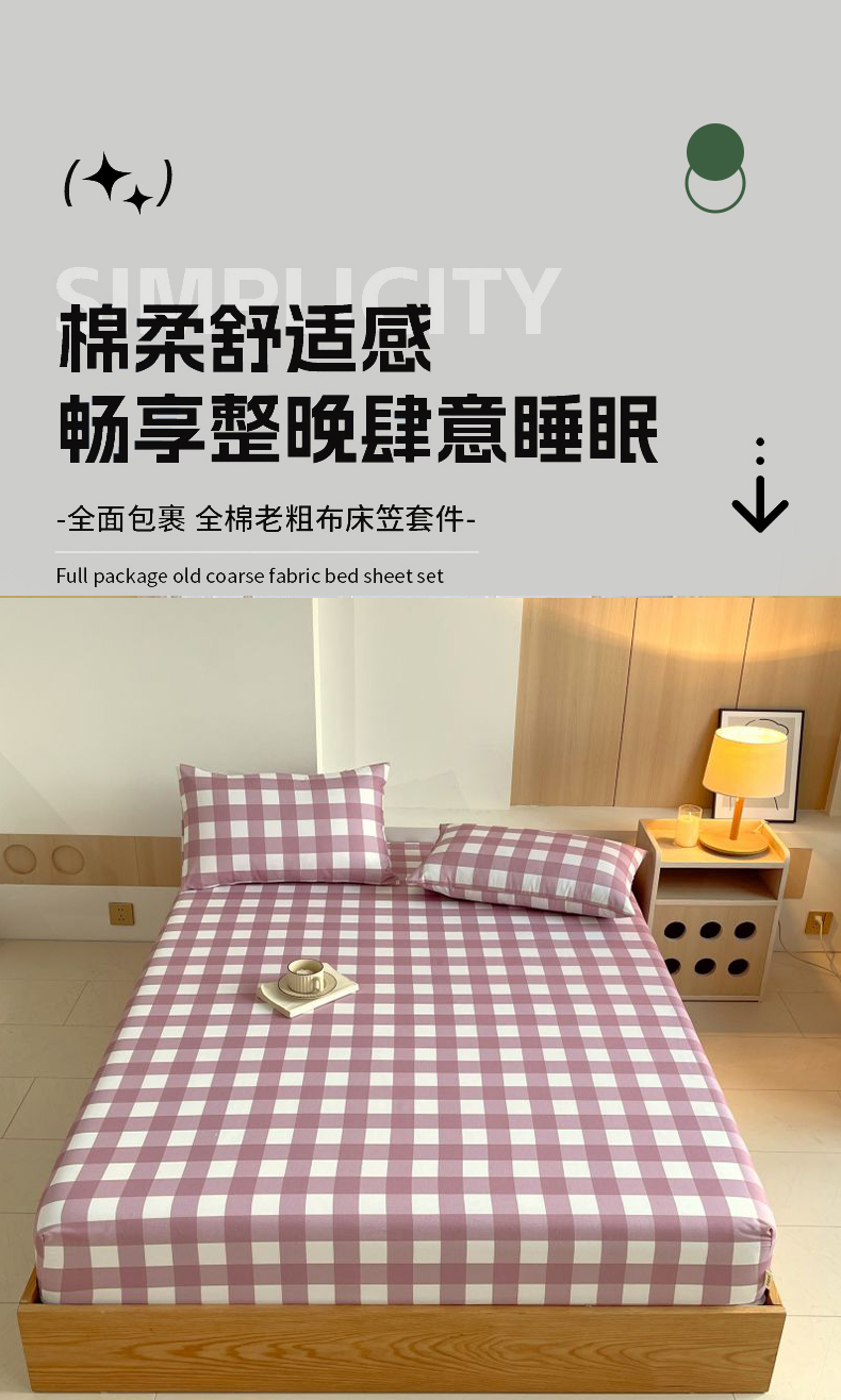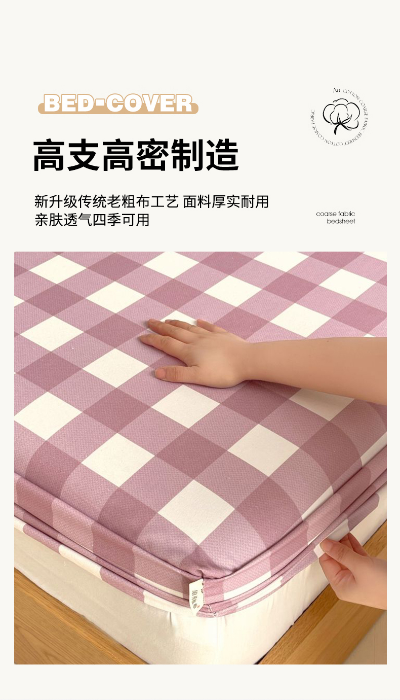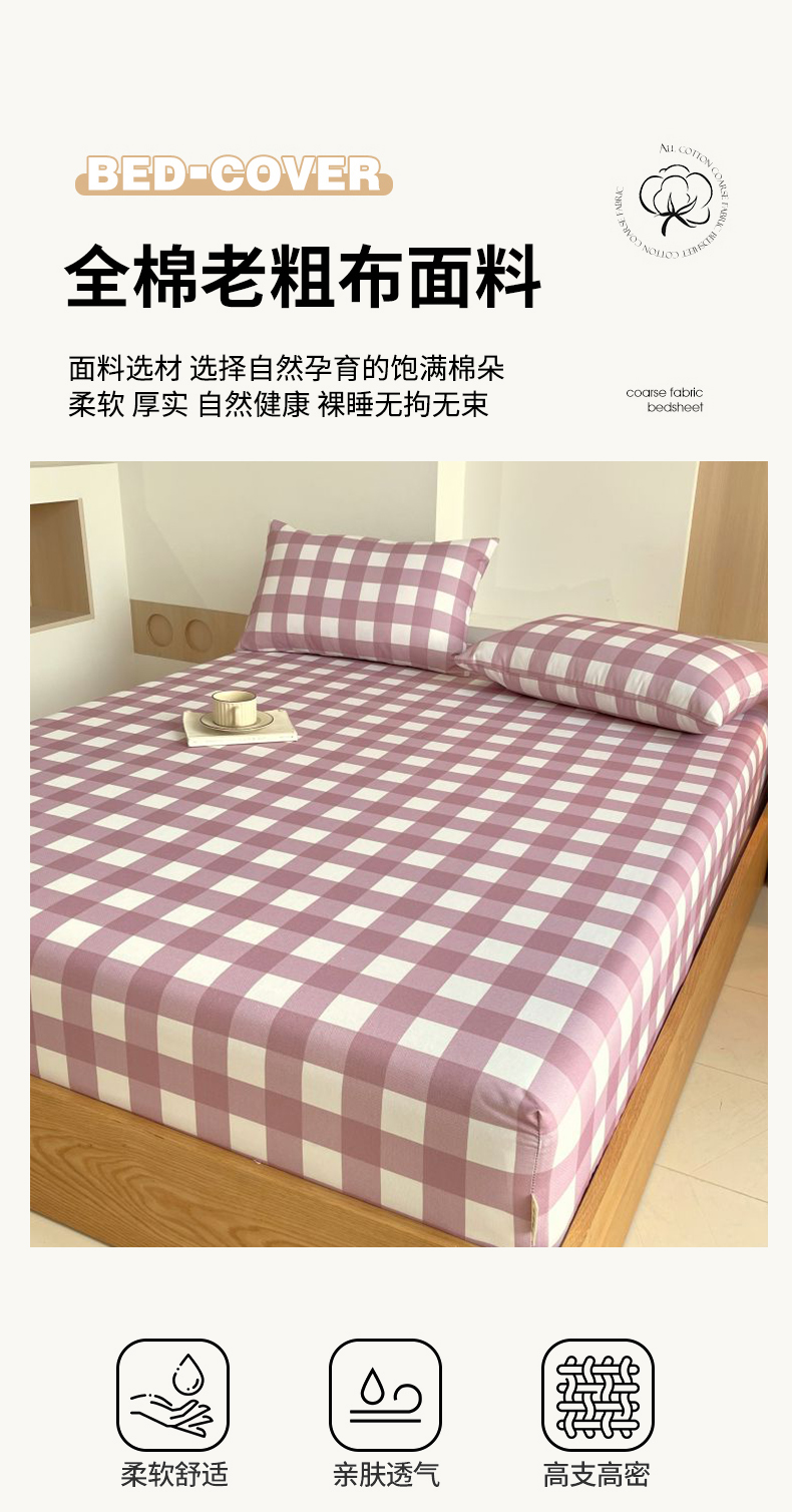 (总)欧妮家纺 2025新款全棉老粗布单床笠-床垫套纯棉空调凉席子床笠三件套-格纹系列