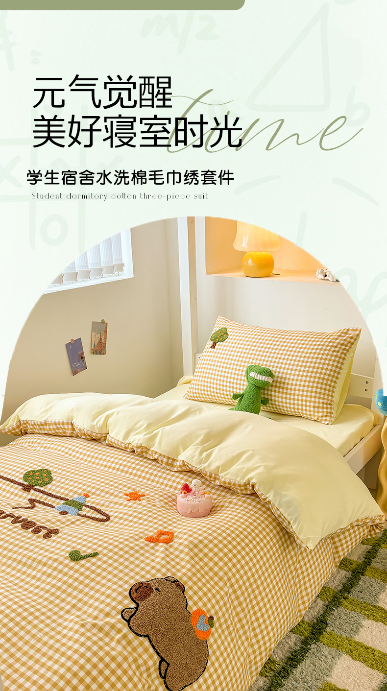 当前位置: 91家纺网 > 商品网购 > 床品套件 > 三件套 > 欧妮家纺 2025新款学生床三件套学校宿舍单人寝室上下铺床上用品-提供买家秀 拉拉旅行-黄色格