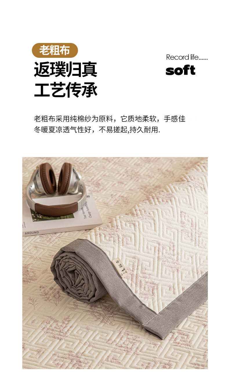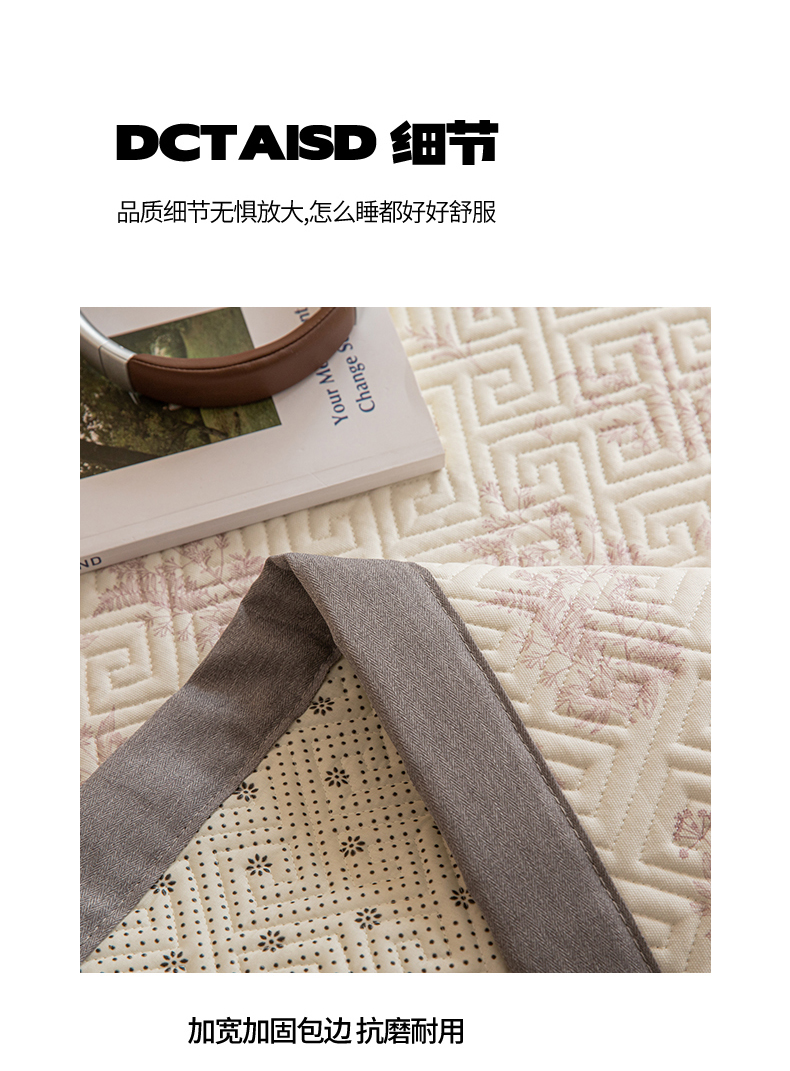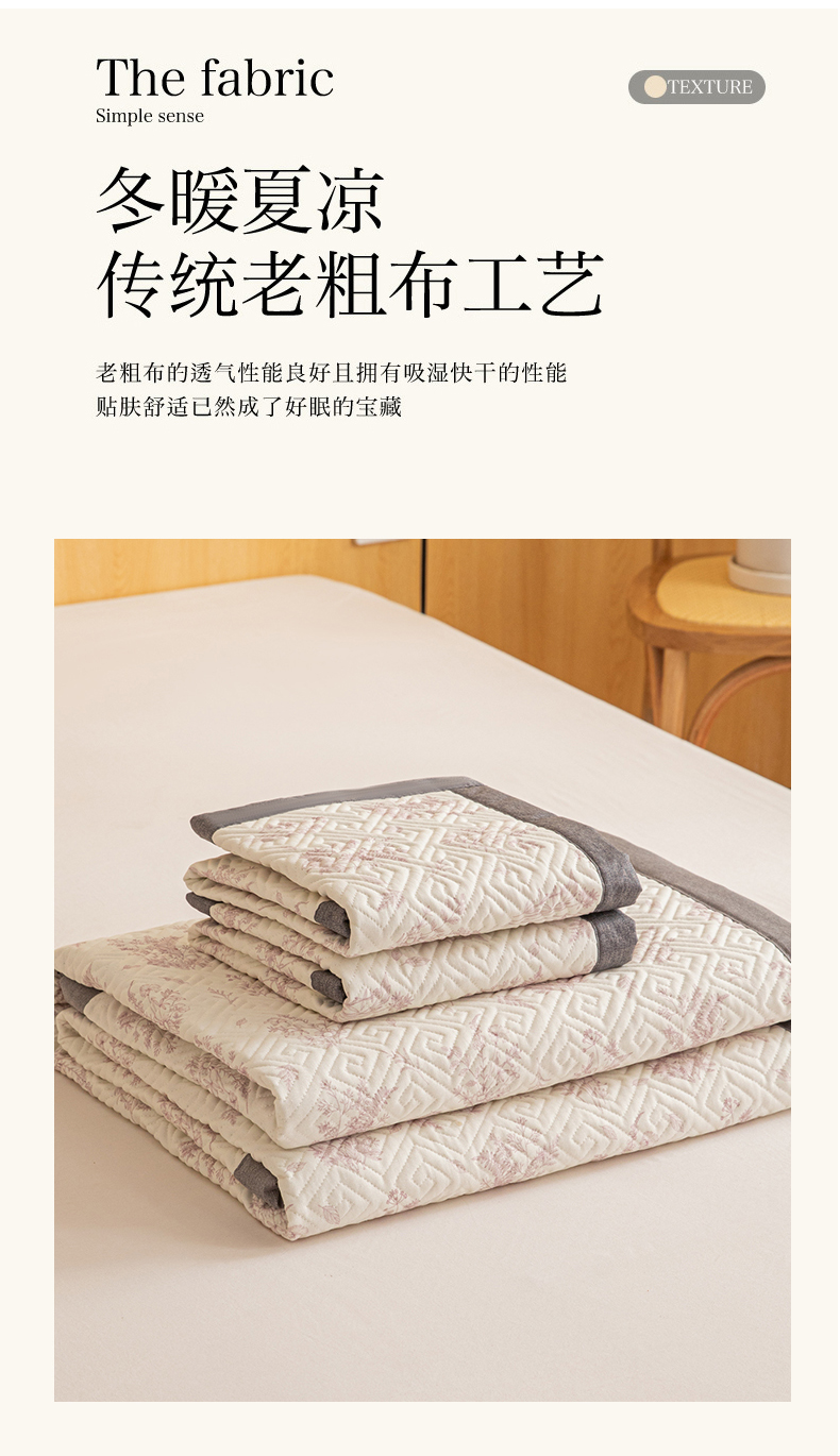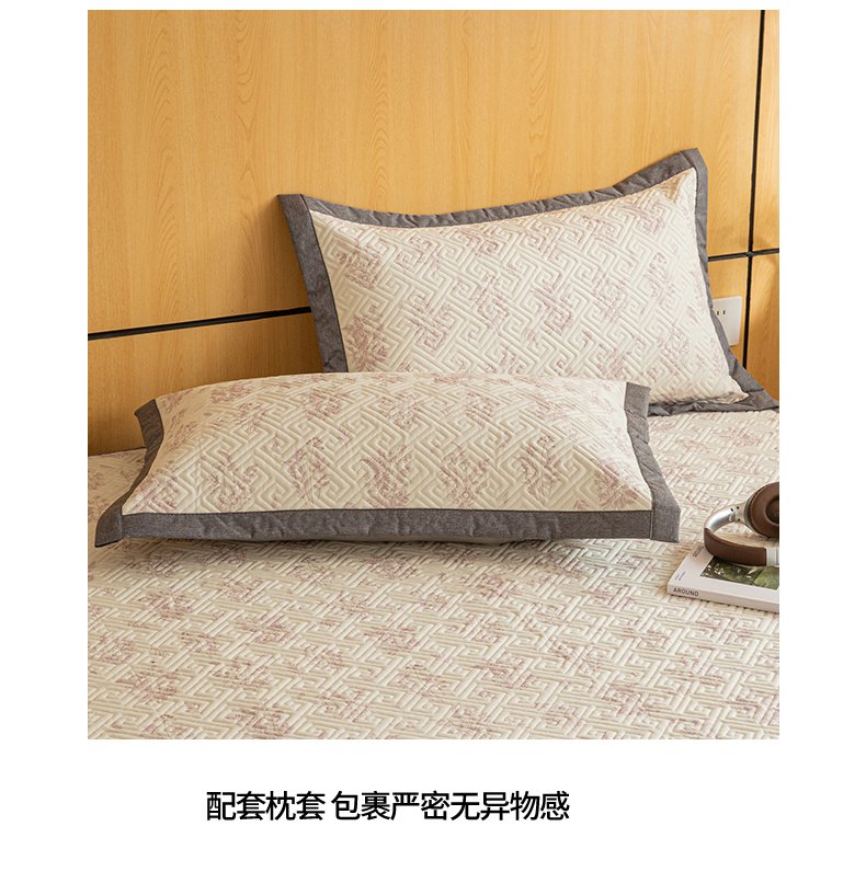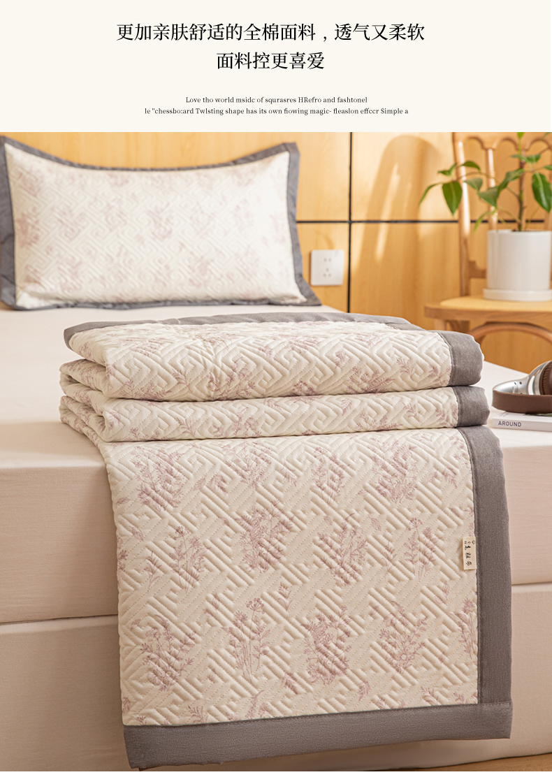 商品名称:女子家纺 2026新款宽边全棉纯棉老粗布绗缝夏季凉席席子 翠影-粉