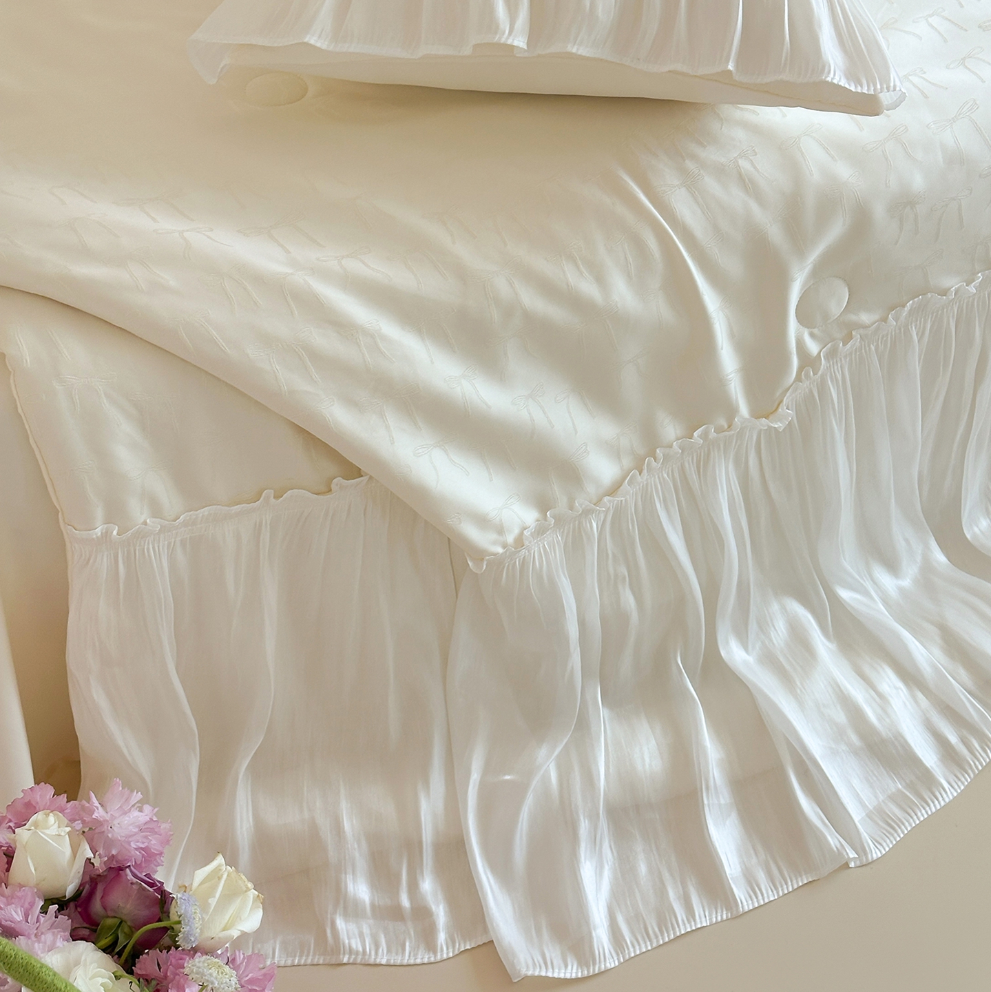 (总)山茶家居-原创设计(原山茶家纺) 2025新款全棉夹棉床裙,白色,粉色,奶黄,天蓝