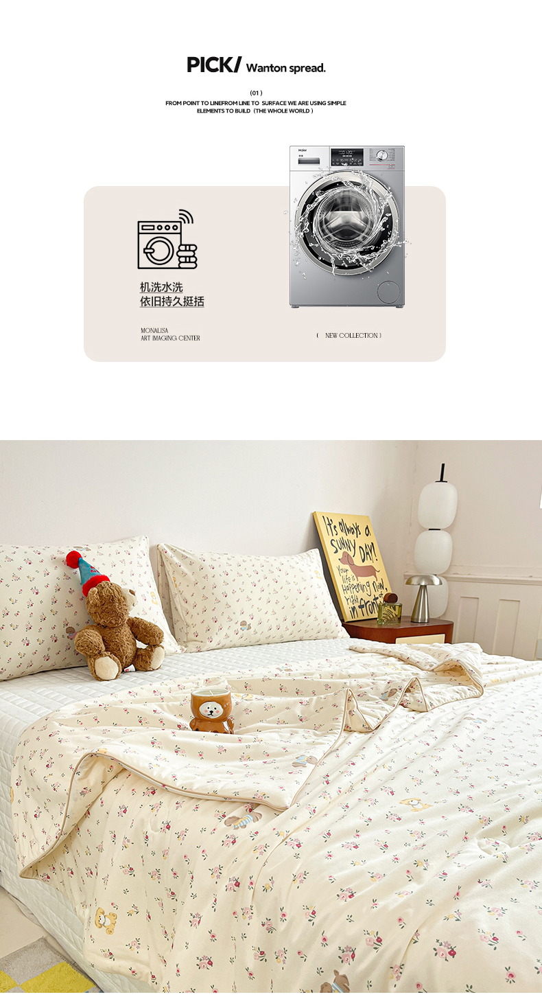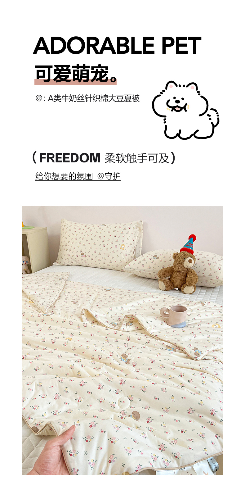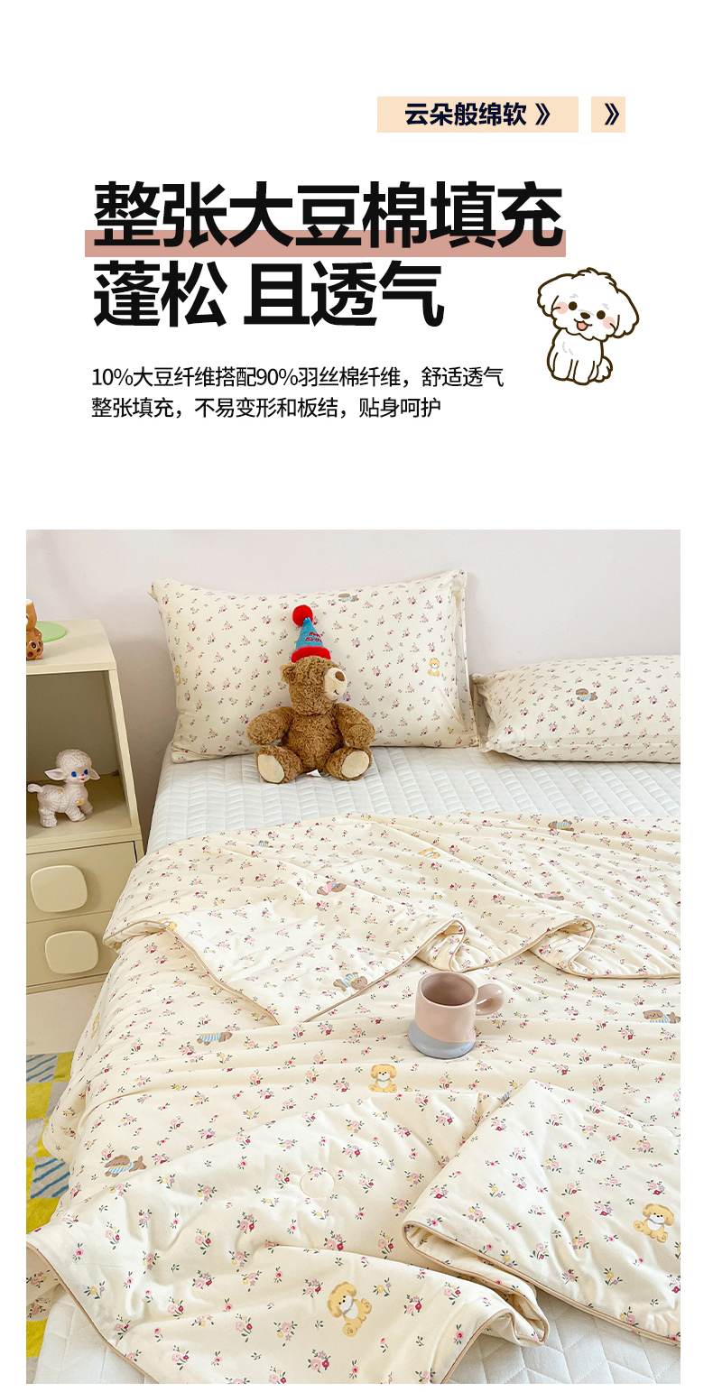(总)一加一 2026春夏新款云小棉贴布绣花大豆夏凉被空调被夏被四件套,波点小狗,波点熊仔,蜜桃小兔,抹茶熊猫,奶油小鳄鱼