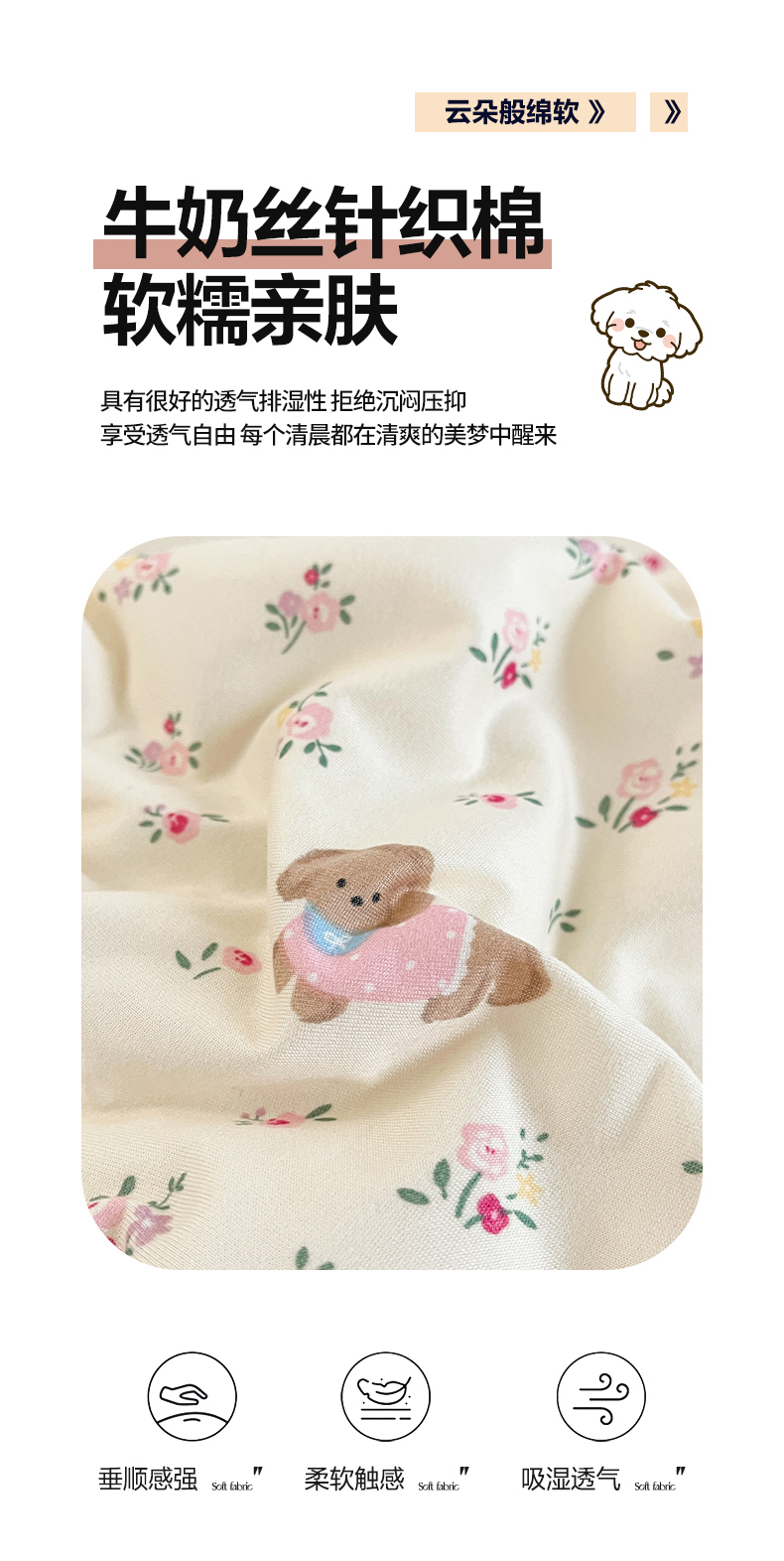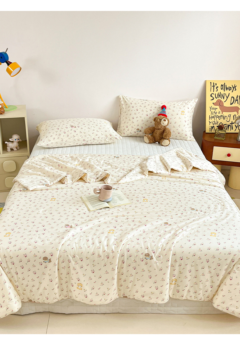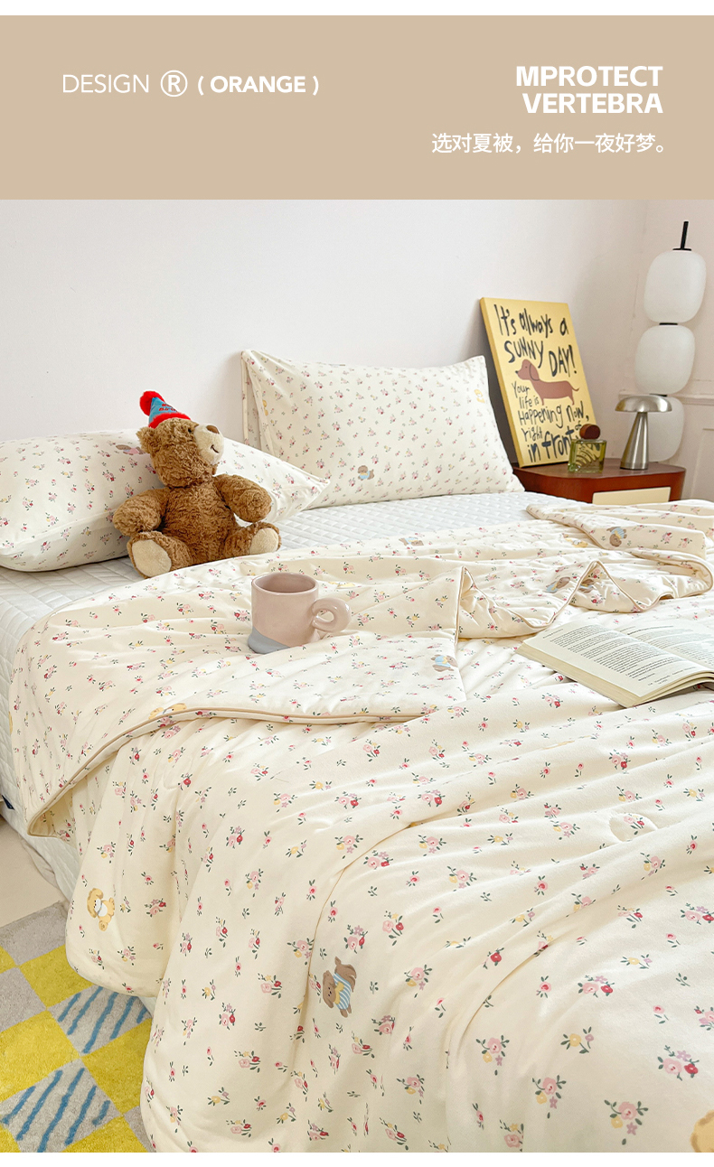(总)一加一 2026春夏新款云小棉贴布绣花大豆夏凉被空调被夏被四件套,波点小狗,波点熊仔,蜜桃小兔,抹茶熊猫,奶油小鳄鱼