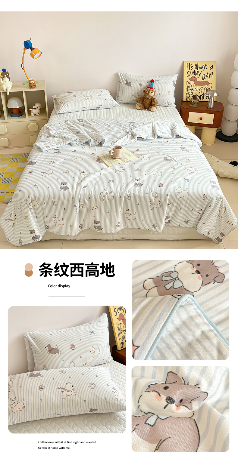(总)一加一 2025新款全棉双层皱皱纱毛巾绣抗菌大豆被芯,快乐狗,腊肠狗,甜甜小丸子,星愿树,熊猫派对