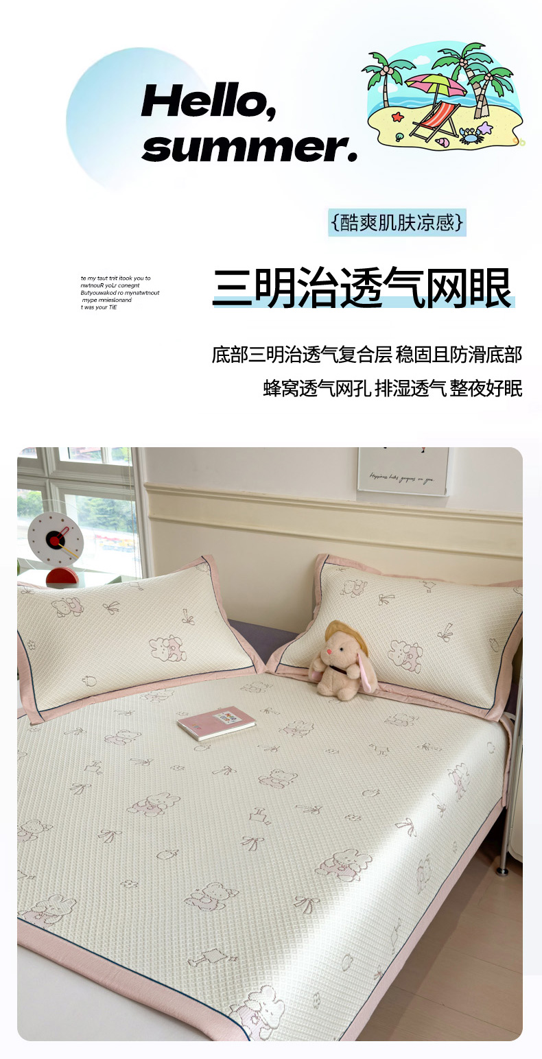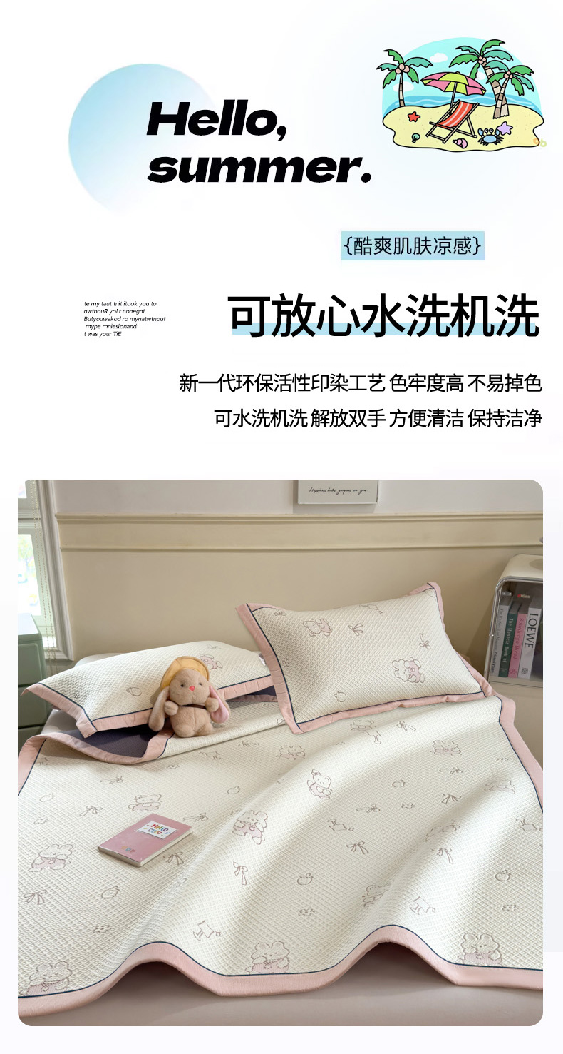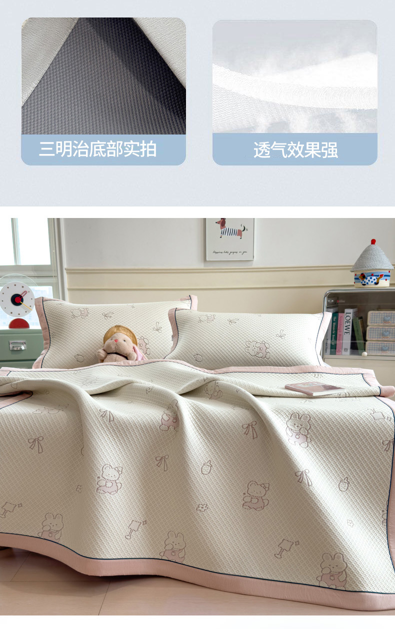 印季家纺 2026新款卡通凉感提花豆豆席凉席席子三件套 粉粉兔