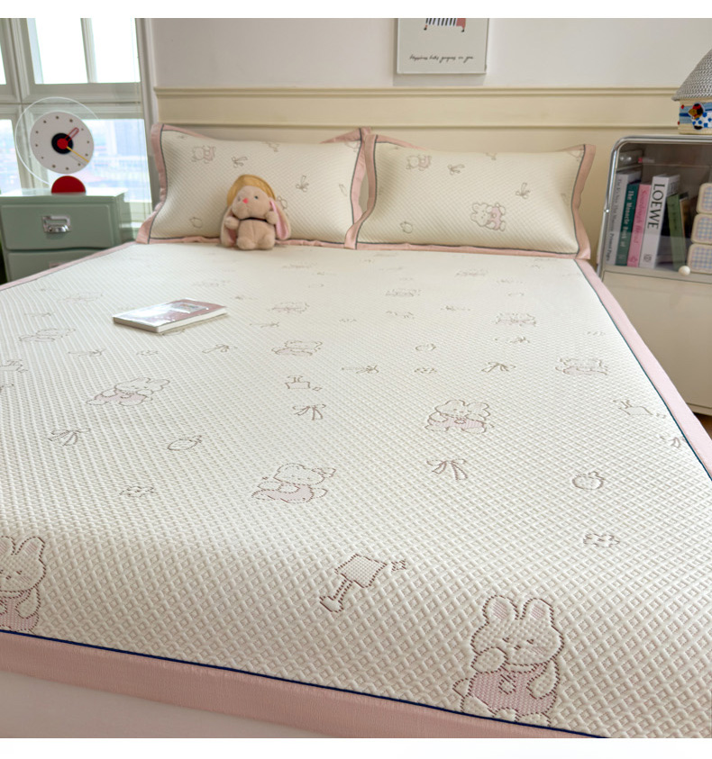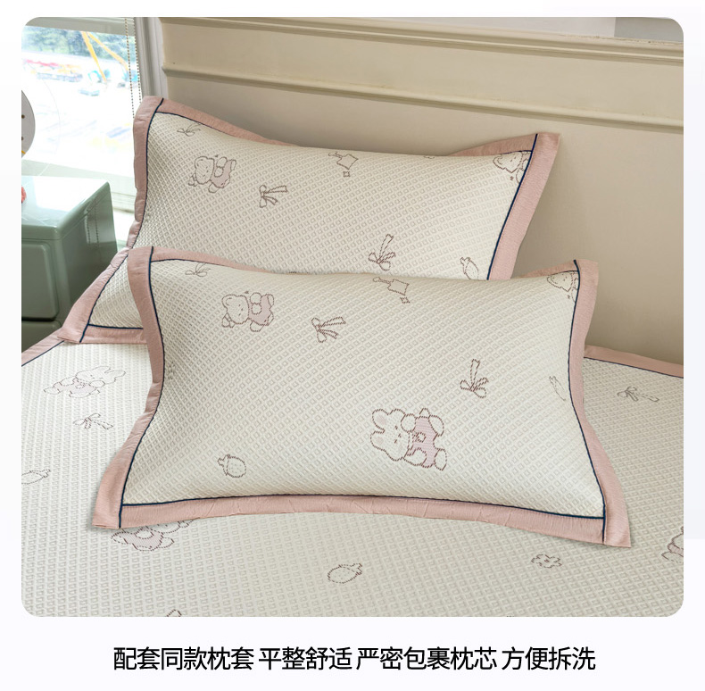 商品名称:印季家纺 2026新款卡通凉感提花豆豆席凉席席子三件套 粉粉兔
