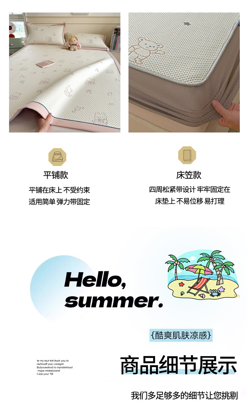 (总)印季家纺 2026新款卡通凉感提花豆豆席凉席席子三件套,大白鹅,粉粉兔,蝴蝶结,滑板狗,蓝兔,条纹熊,西瓜,小黑羊,熊宝宝,组合图仅供展示不可下单