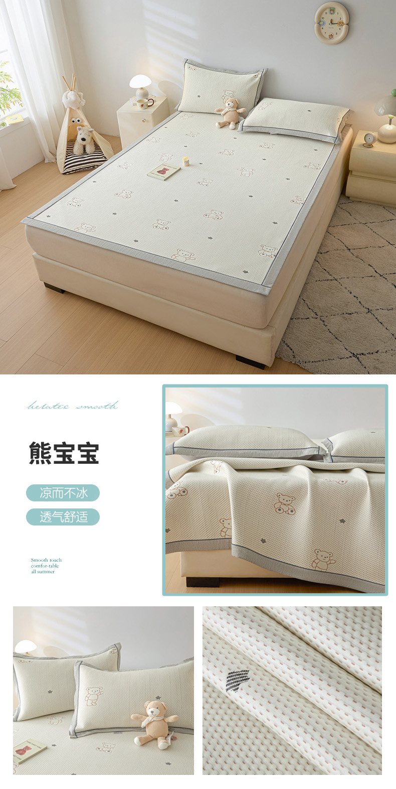 180x200cm平铺款凉席+枕套一对