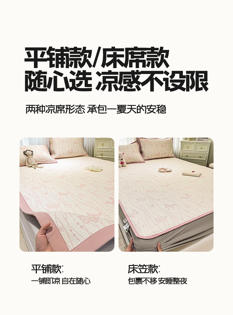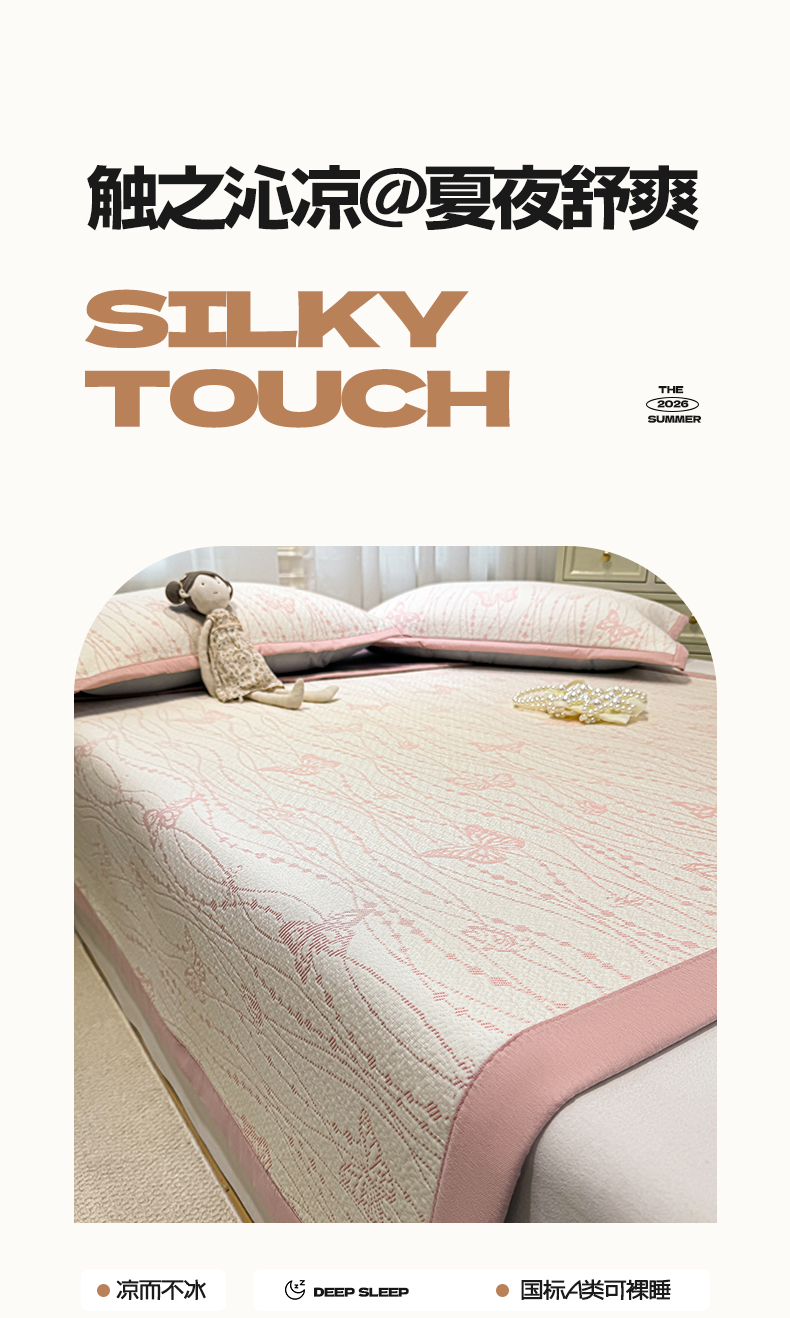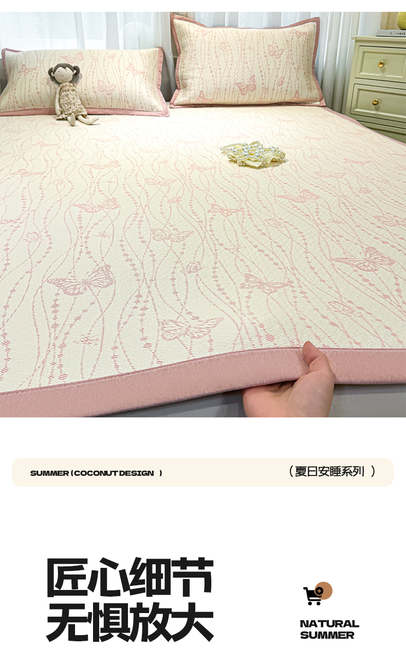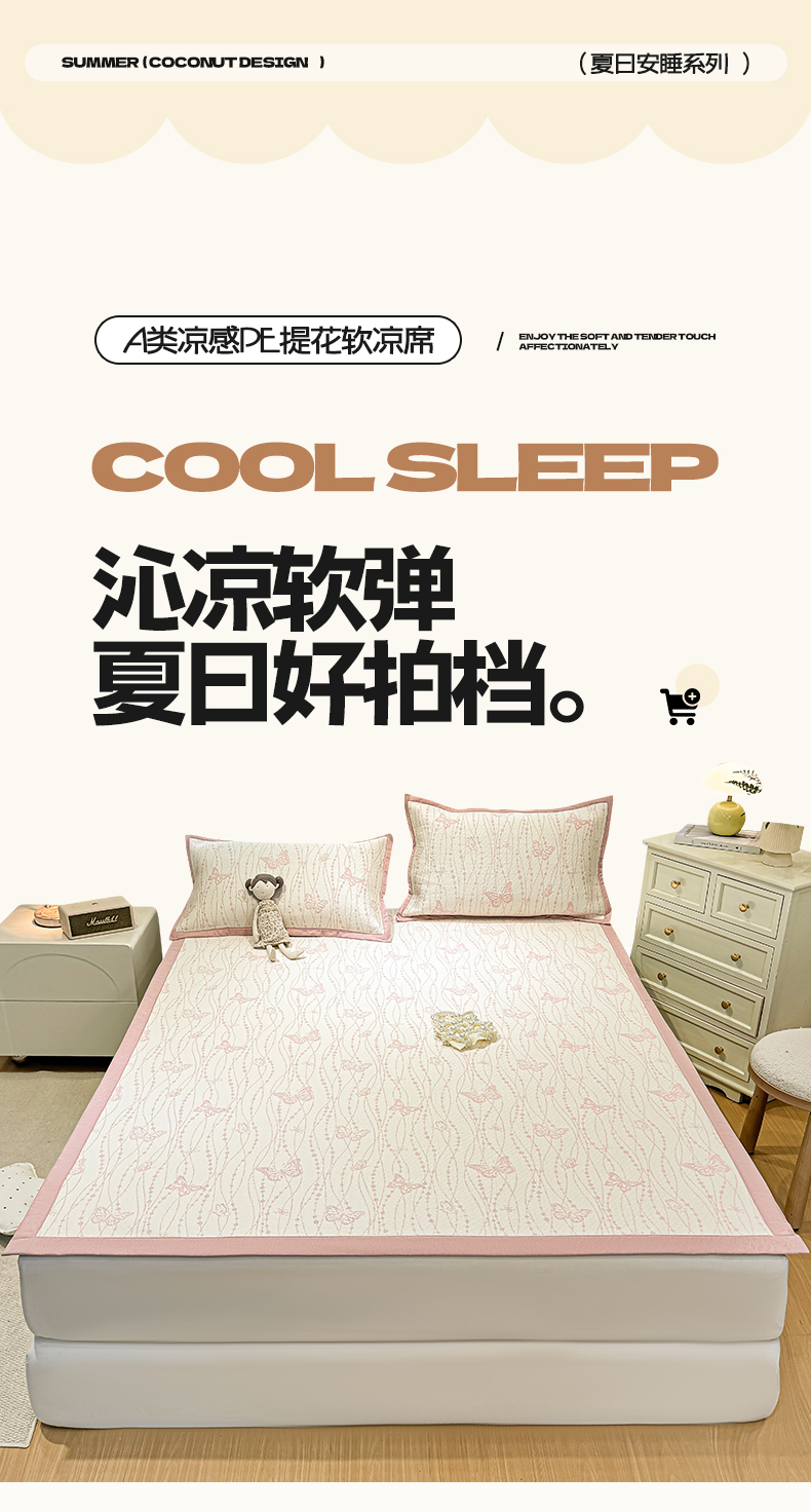 帅露家纺 2026新款A类PE中分子提花软凉席席子 平铺款-蝶舞纷纷