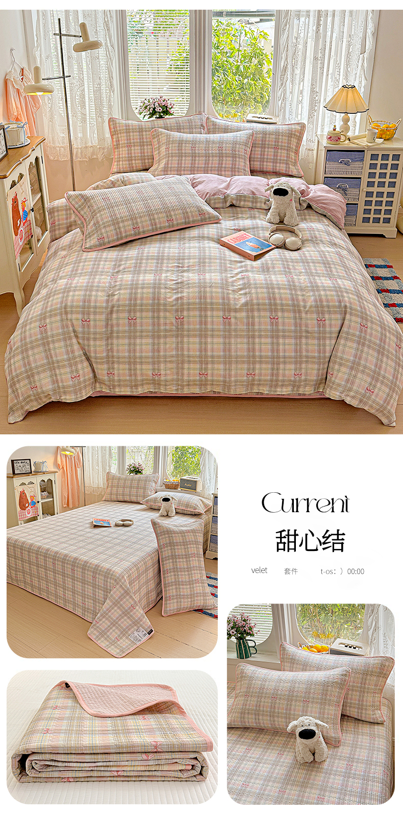当前位置: 91家纺网 > 商品网购 > 床品套件 > 四件套 > 全棉普通四件套 > 文黛家居 2026新款全棉双层纱床盖四件套 甜心结