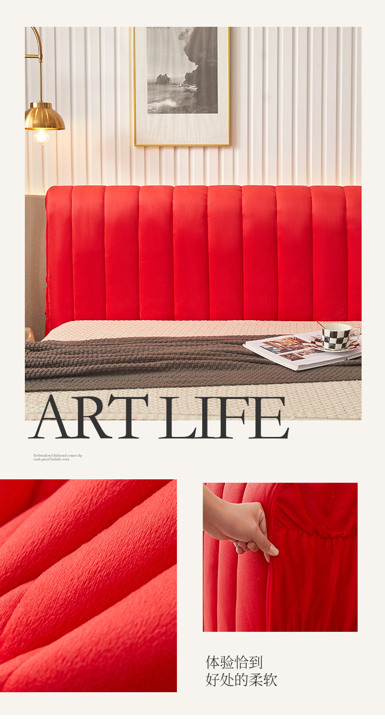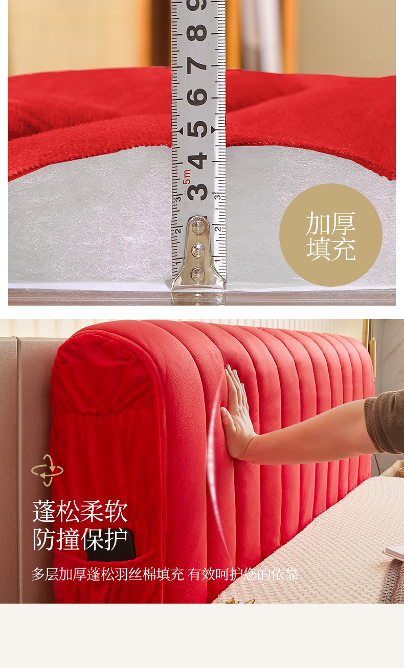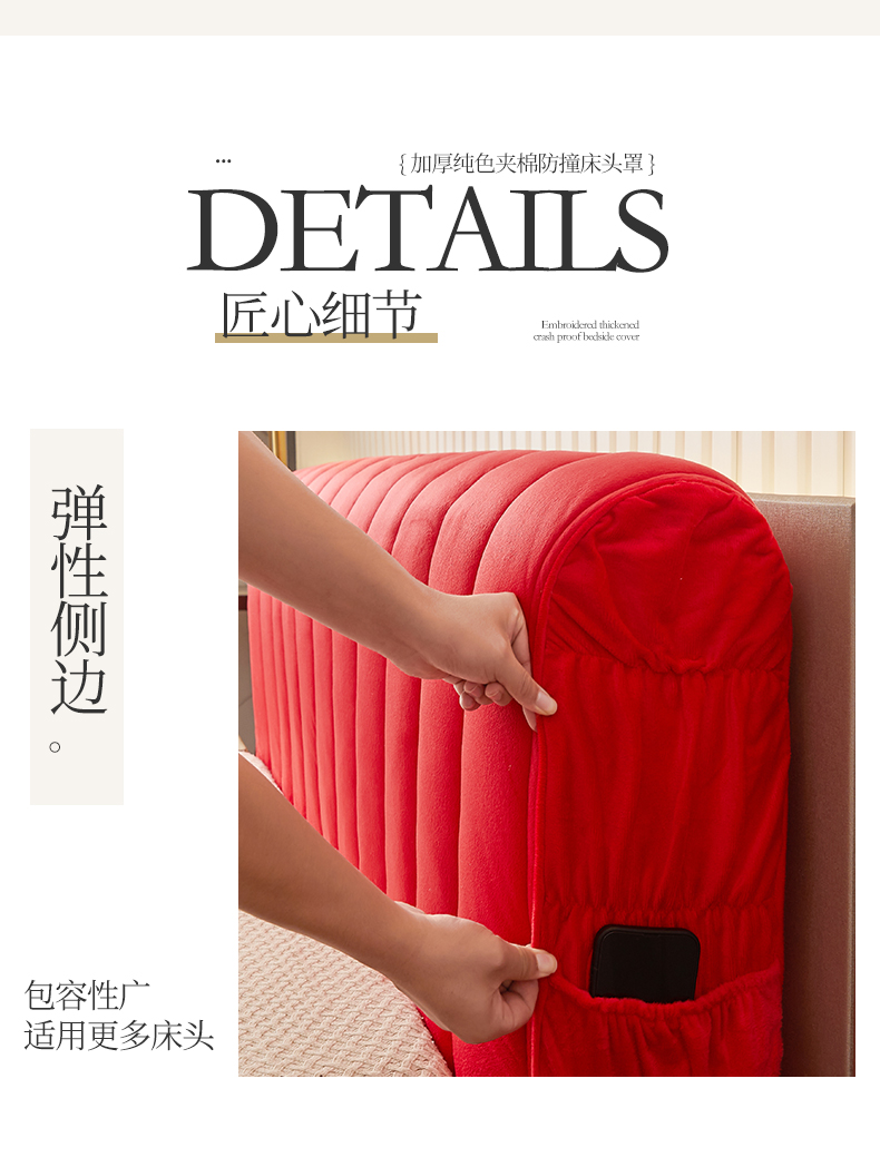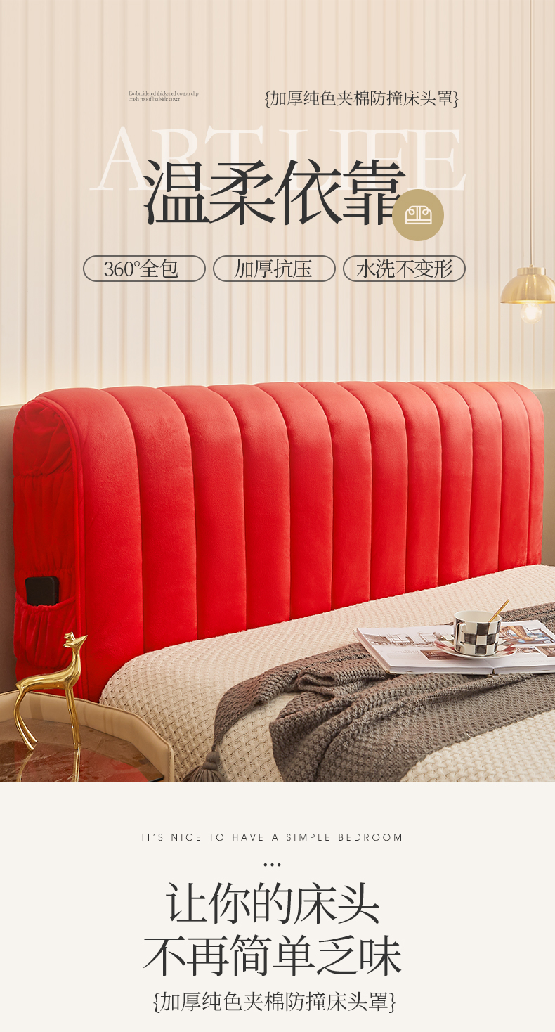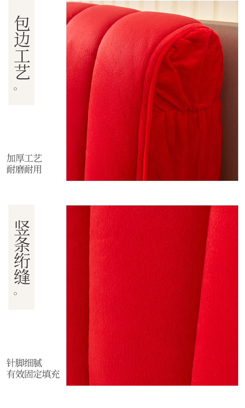 商品名称:情恒家纺 2026新款立体防撞双面加厚床头罩条形款 条形款 中国红