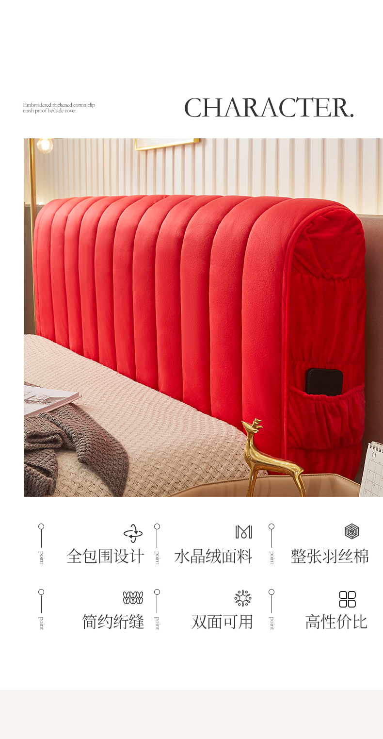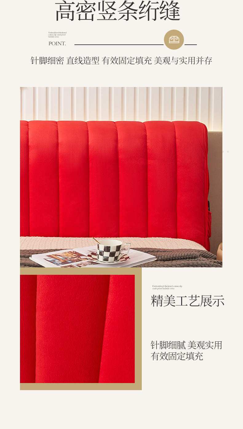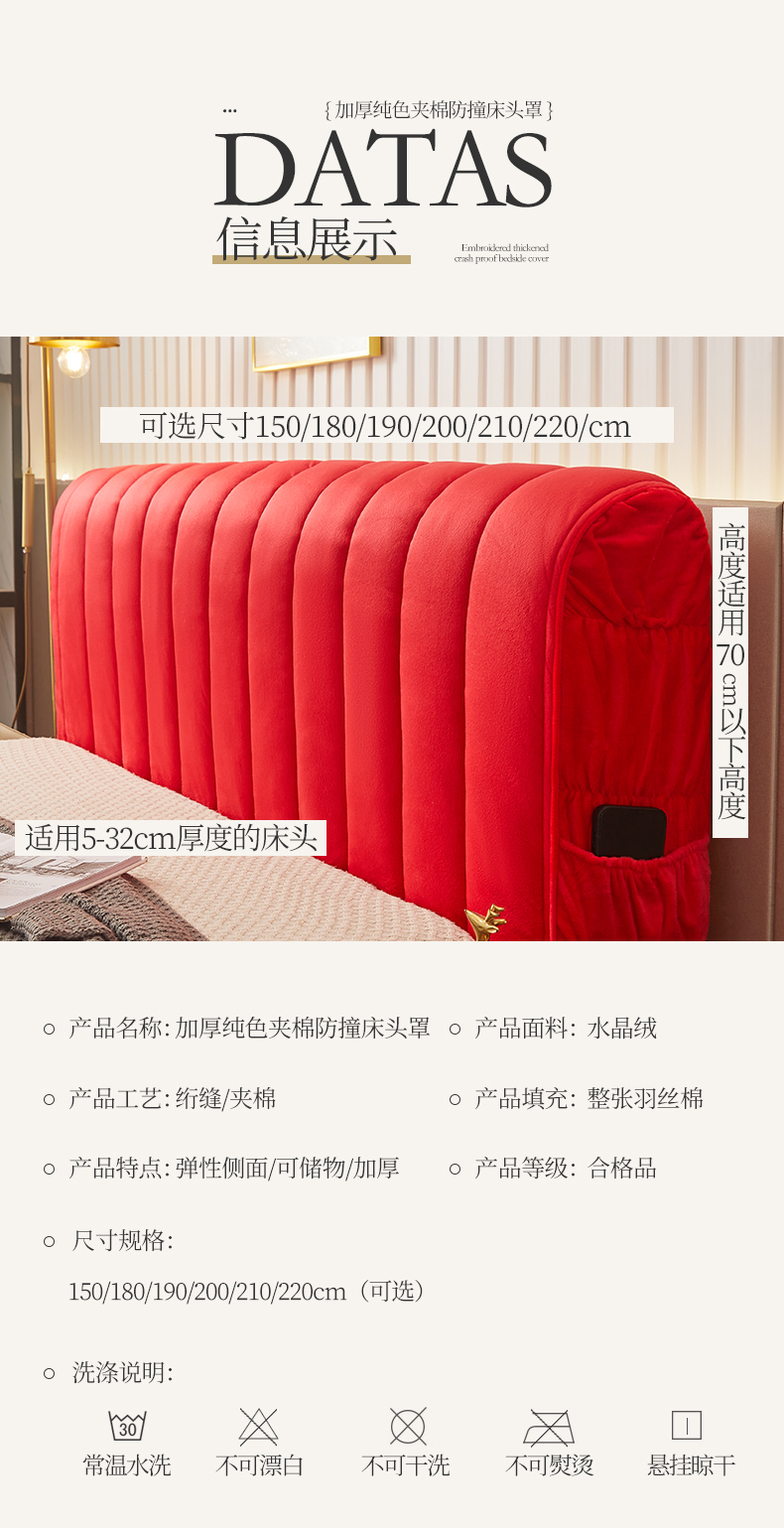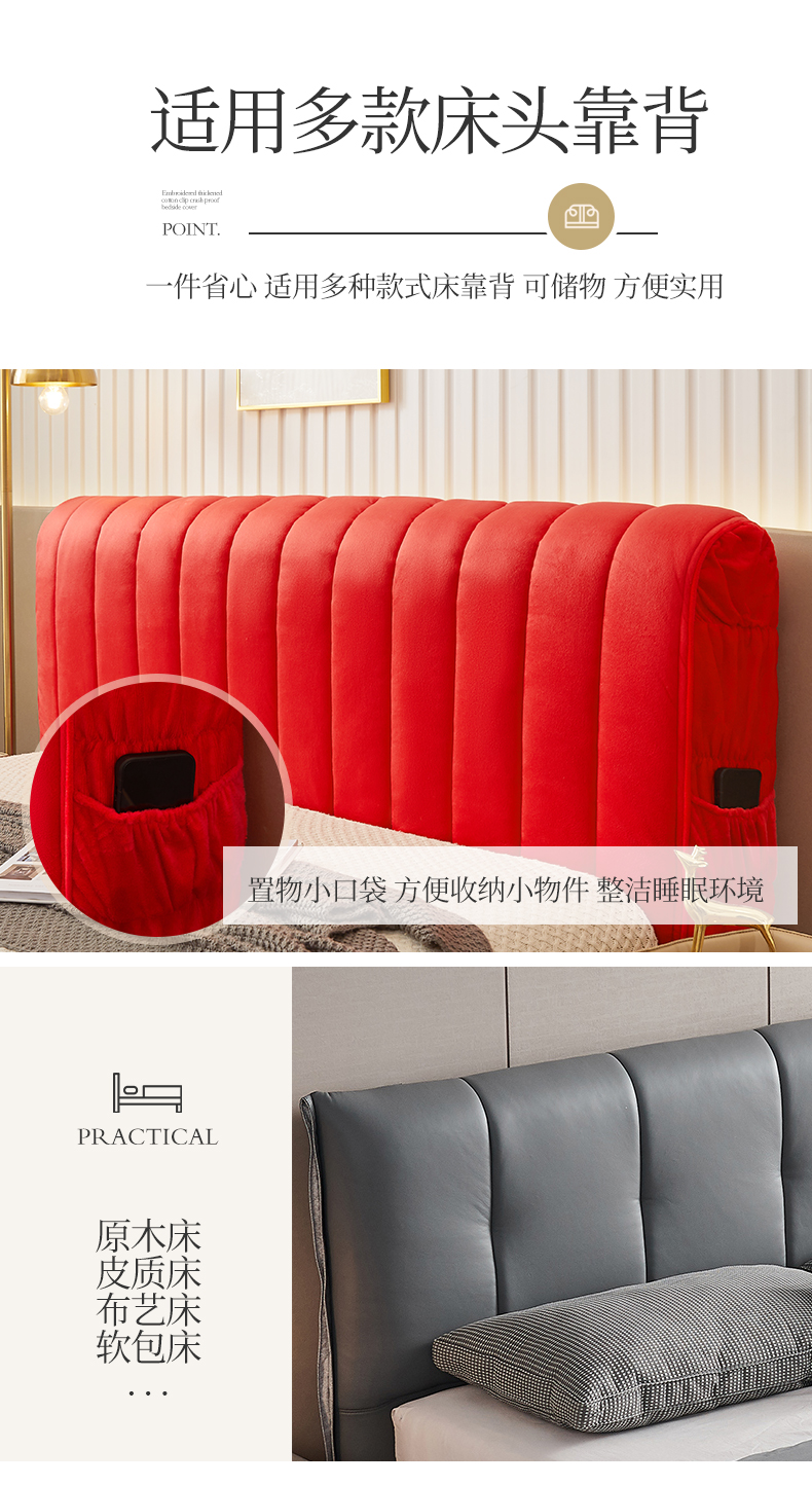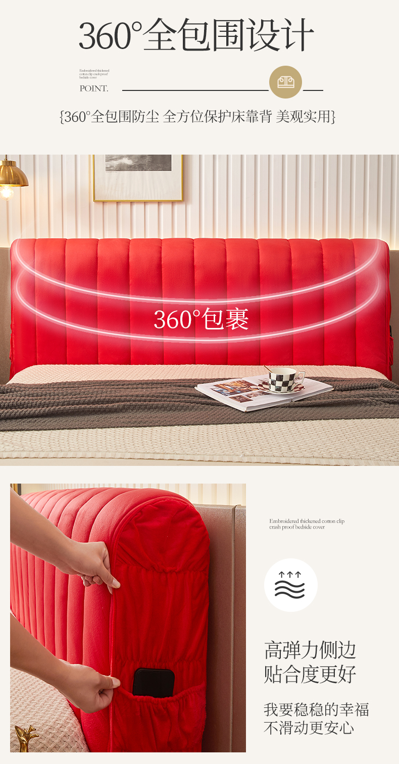商品名称:情恒家纺 2026新款立体防撞双面加厚床头罩条形款 条形款 中国红