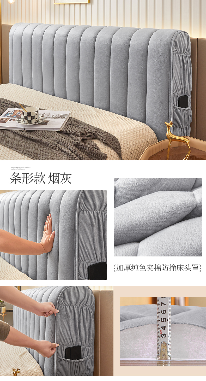 (总)情恒家纺 2025新款兔兔绒抽条加厚床头罩,宾利蓝,星耀黑,咖啡棕,卡其,奶油白,月光灰