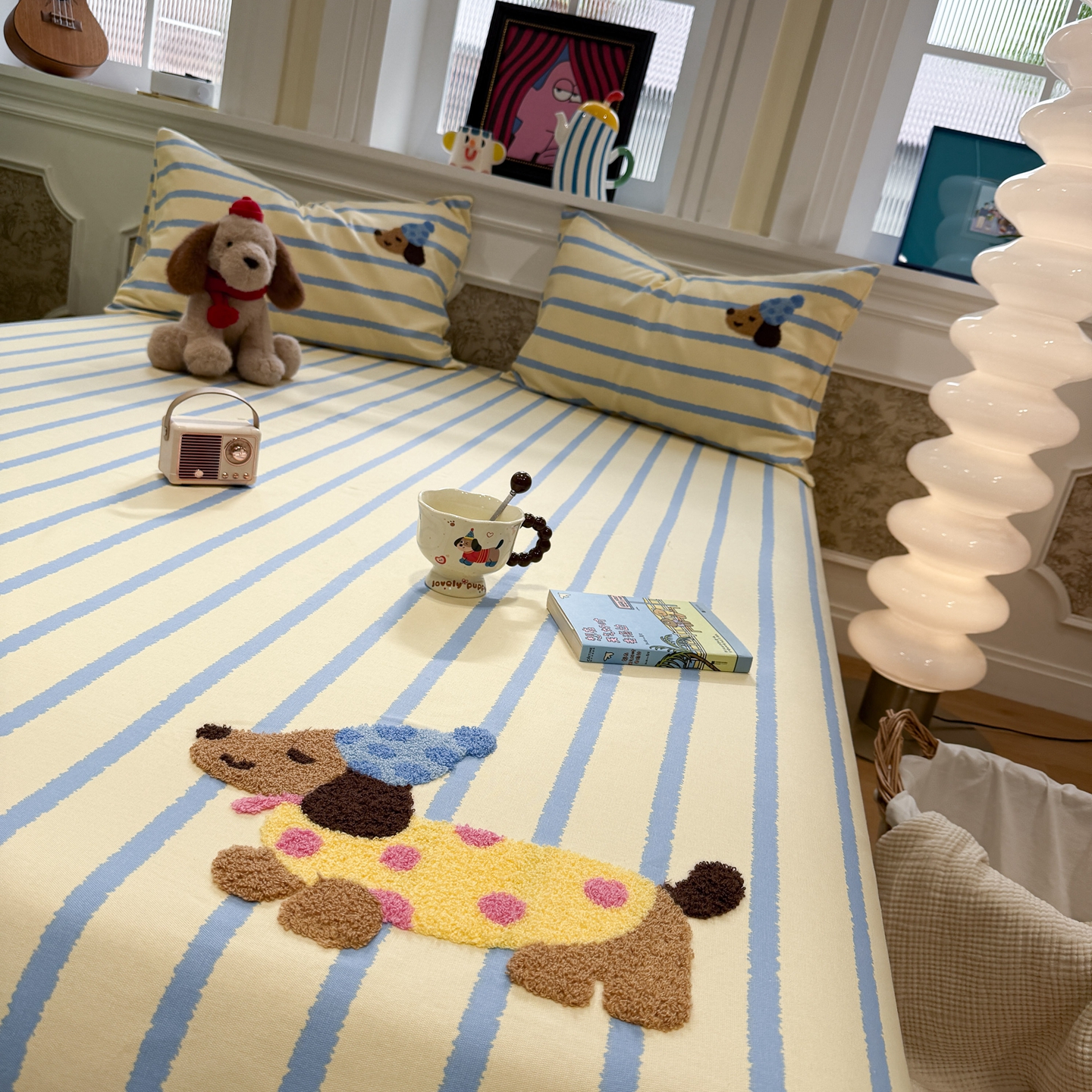 (总)觅糖家纺 2024新款牛奶绒印花小版毛巾绣四件套,爱心蝴蝶结,格子企鹅,马戏团,奶酪派对,扭扭蛋仔,苹果小猫,许愿星,黑白兔兔,咖啡猫,可爱熊粉,快乐小熊蓝,绿色大眼怪,奶牛小狗