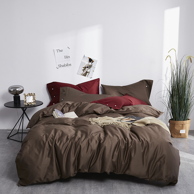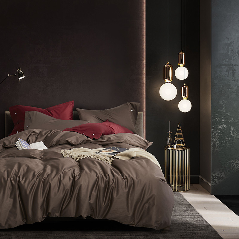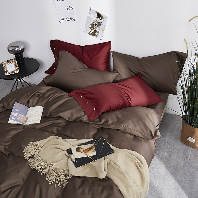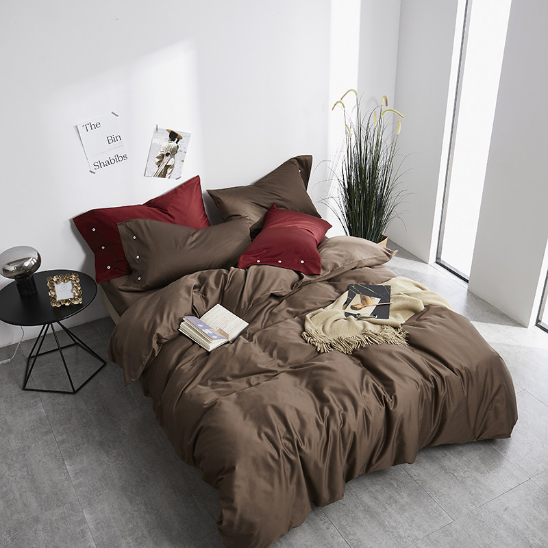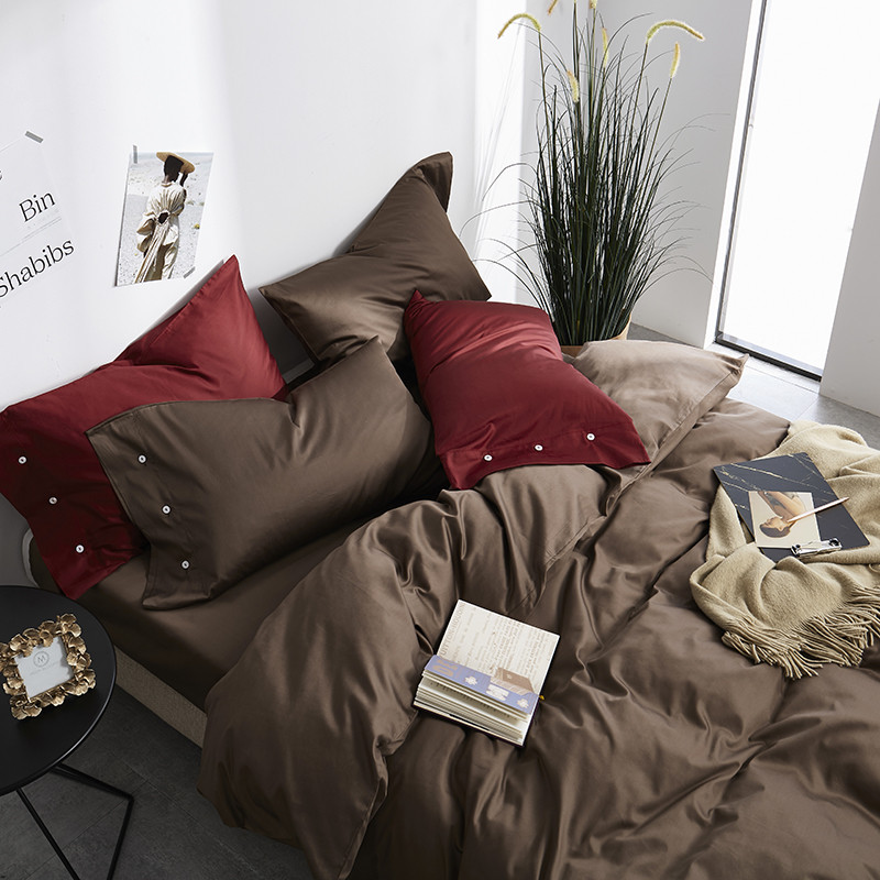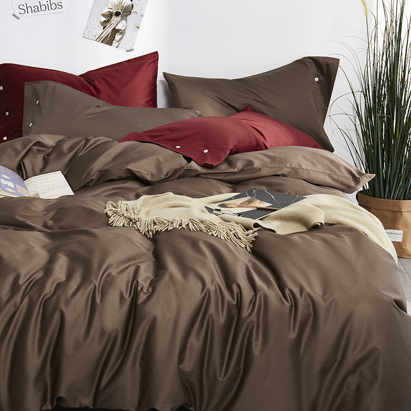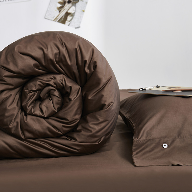 优然居家纺 60支长绒棉纯色四件套深牧咖
