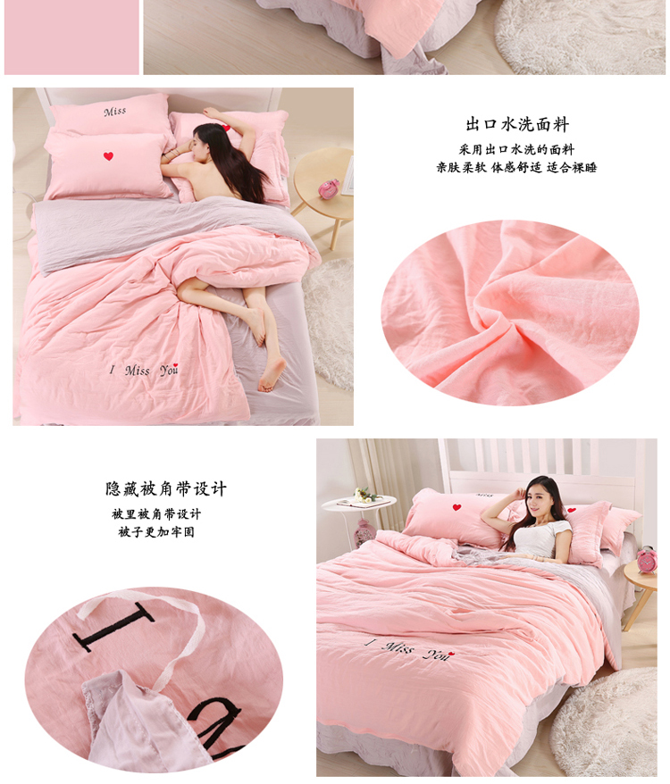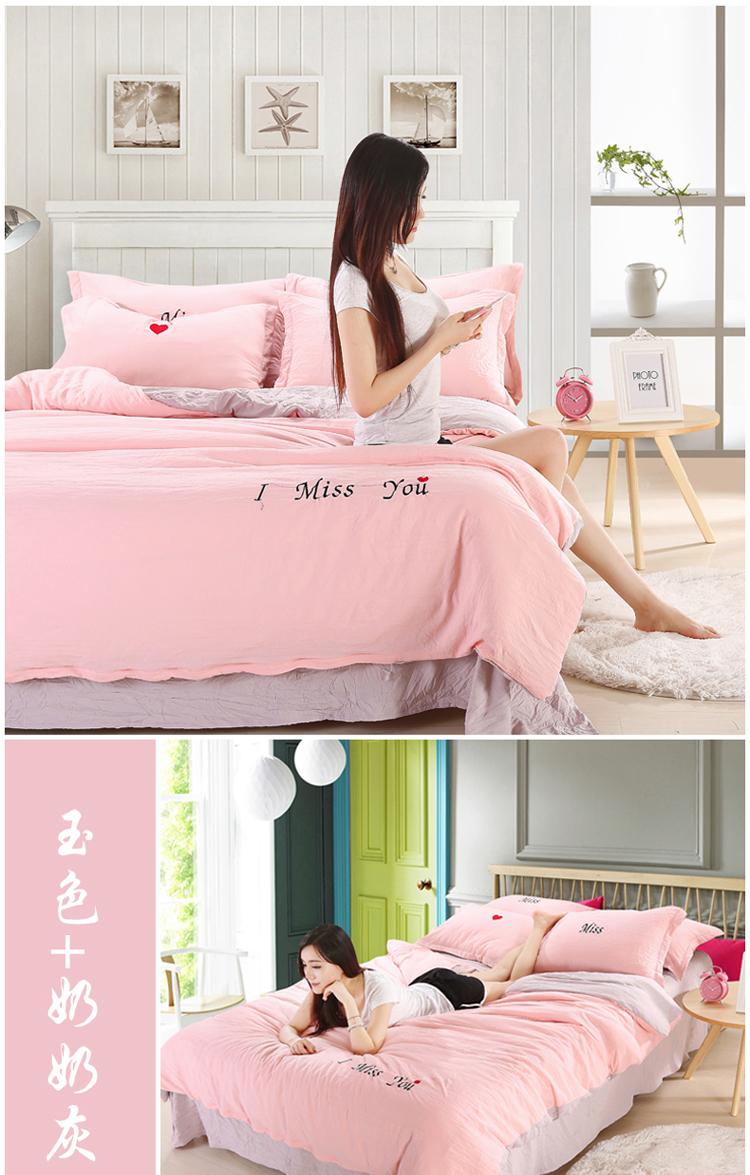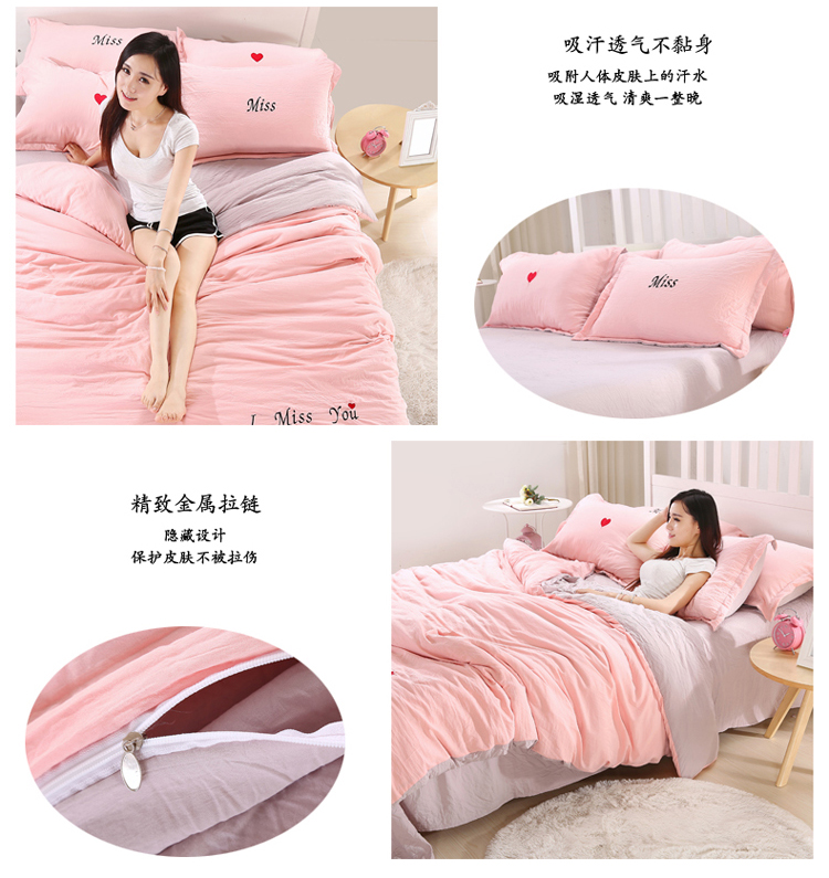 睡美美家纺 2025新款水洗棉四件套床单款 玉色+奶奶灰