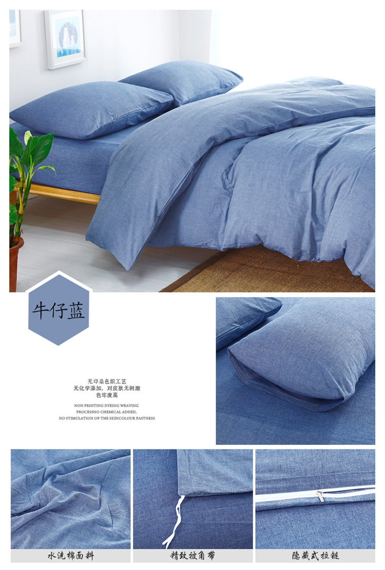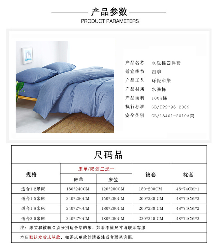 商品名称:玖玖爱家纺 水洗棉四件套床笠款 牛仔蓝