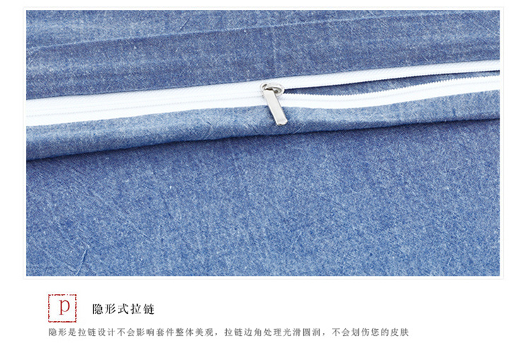 玖玖爱家纺 水洗棉四件套床笠款 牛仔蓝