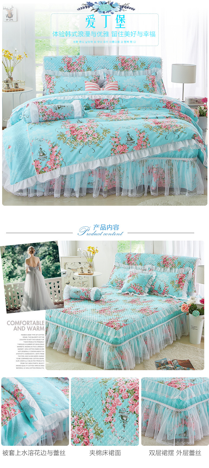 商品名称:菊上新品韩版全棉加厚加棉田园公主风床裙款四件套(总13款)