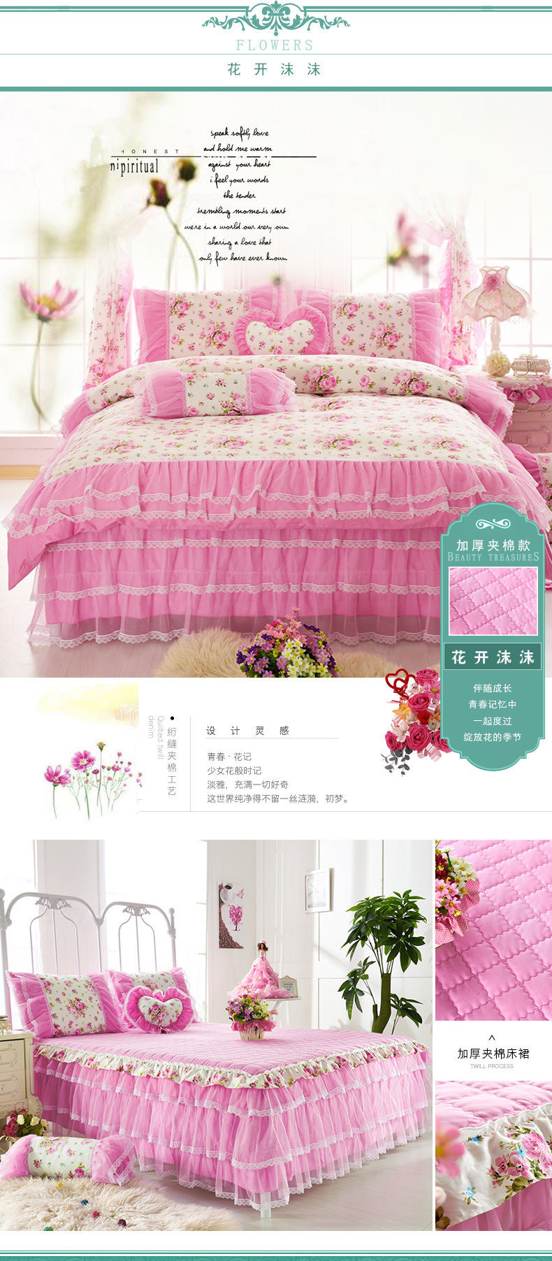菊上新品韩版全棉加厚加棉田园公主风床裙款四件套(总13款)