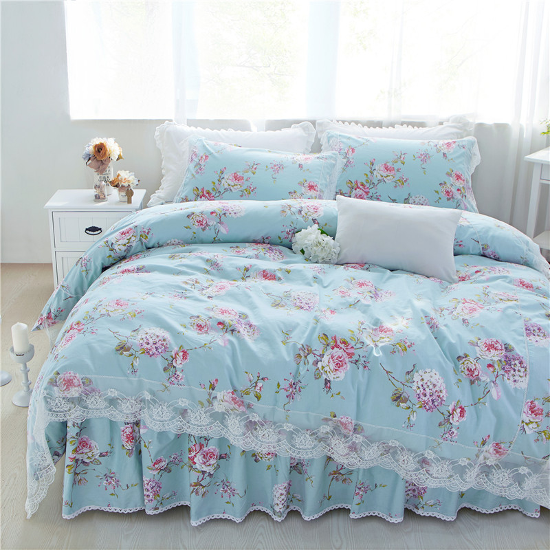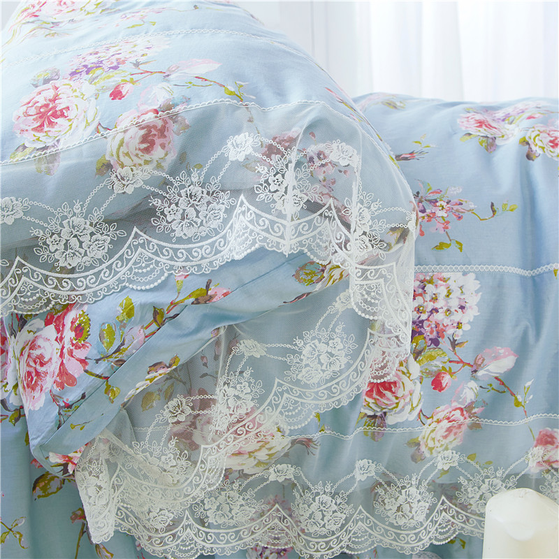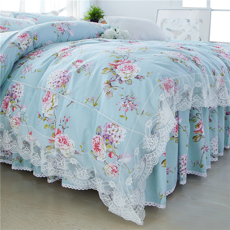 商品名称:2017优质全棉13372韩版蕾丝床裙精品四件套 安娜花园