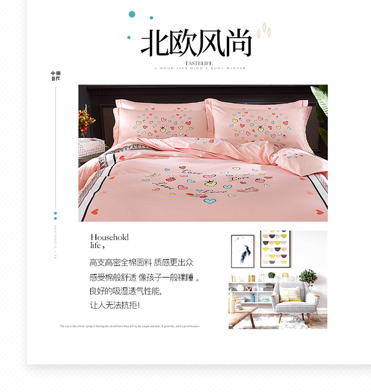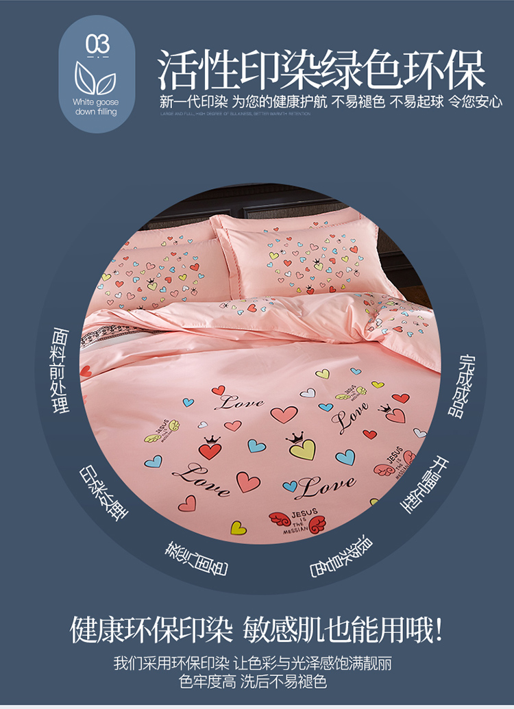 商品名称:雲归梦 活性大版匹马棉四件套-北欧风花型床单款 恋恋不舍