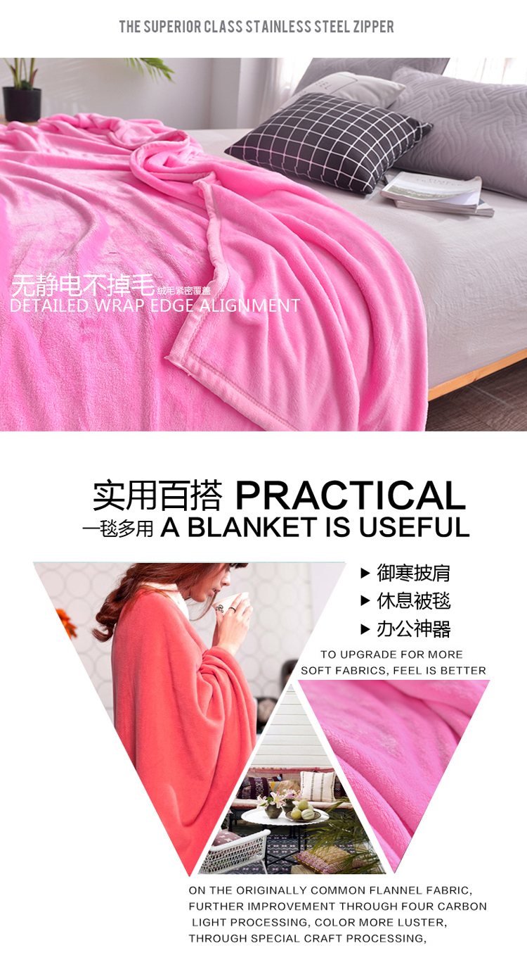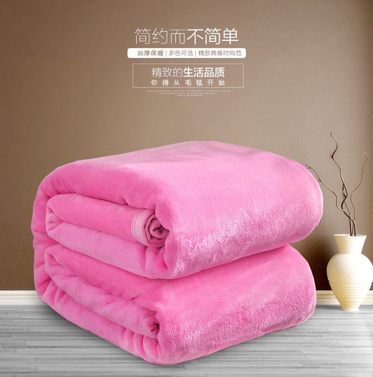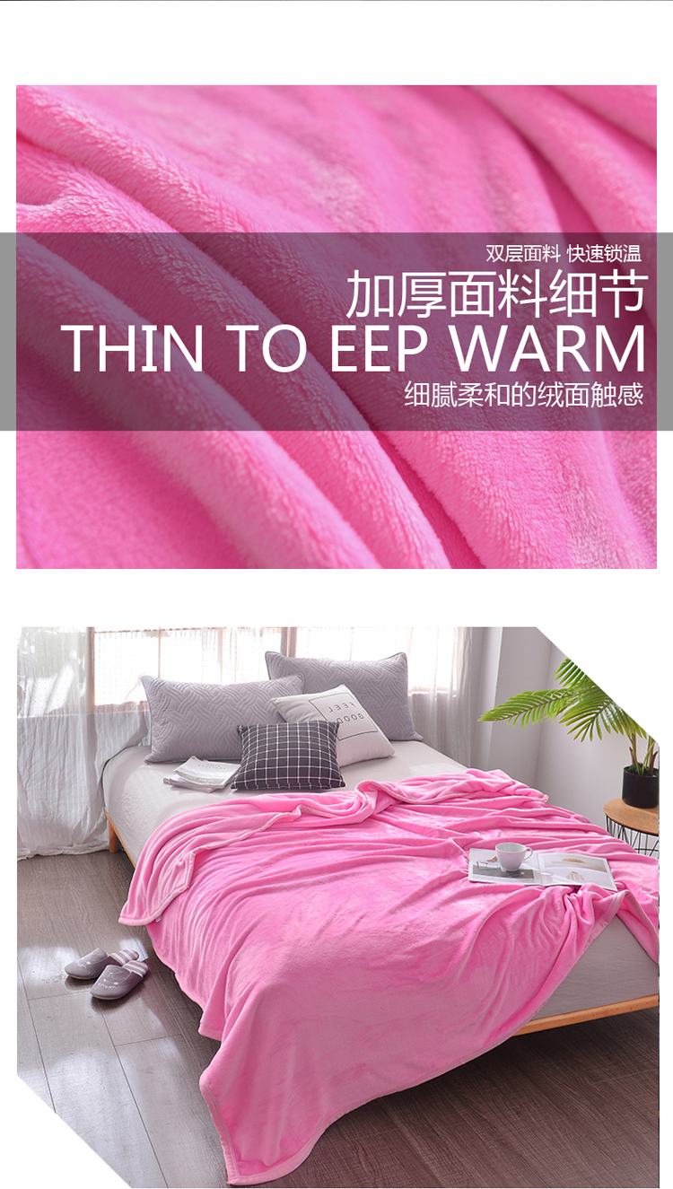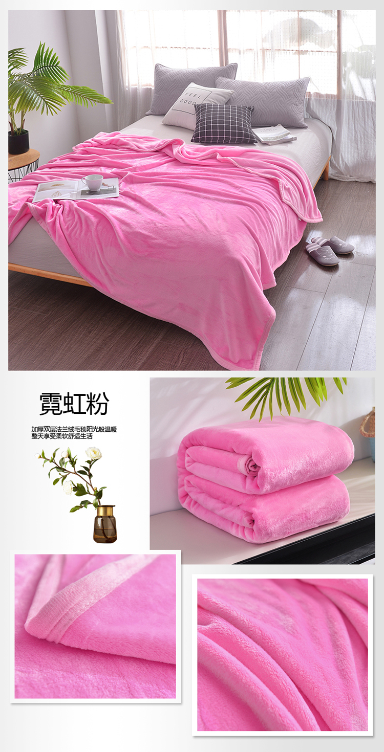 商品名称:雅萱家纺 云貂绒法兰绒珊瑚绒加厚毛毯纯色毯 霓虹粉