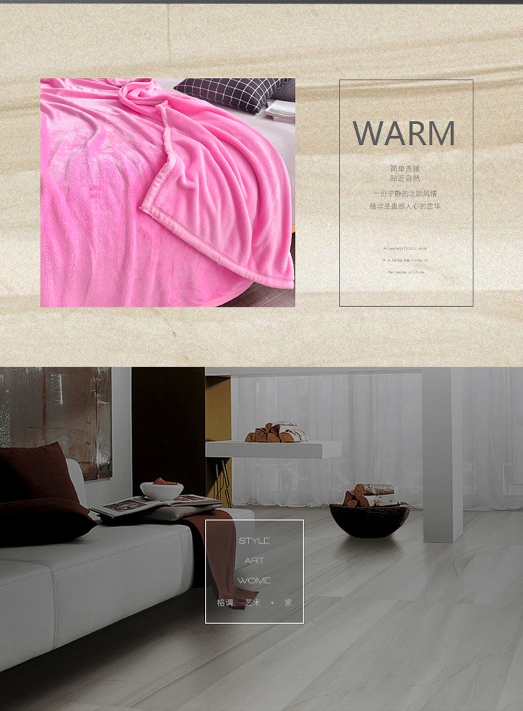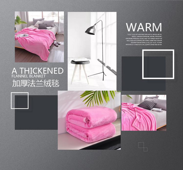 雅萱家纺 云貂绒法兰绒珊瑚绒加厚毛毯纯色毯 霓虹粉